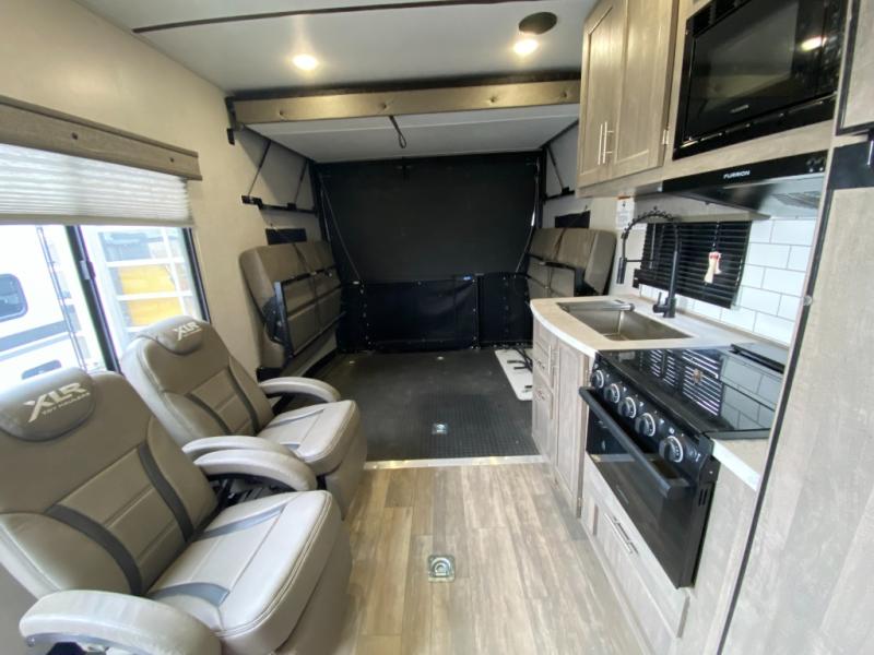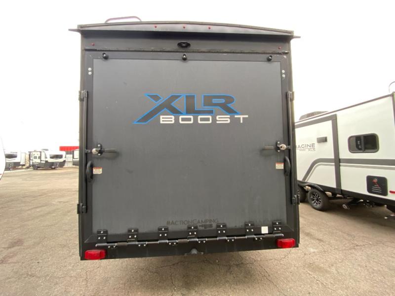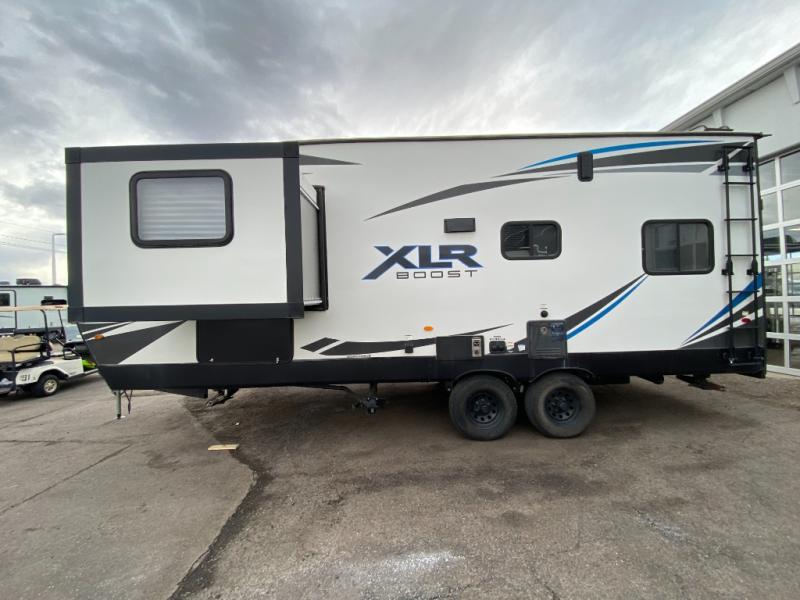 Boost into action camping with one of these Forest River XLR Boost fifth wheel toy haulers or travel trailer toy haulers! The 102" wide body not only provides ample walking around space, but also packs in all of the luxurious features to make your trips great. A seamless PVC roof system prevents water from leaking inside, and the moisture barrier floor enclosure and the oil and gas resistant residential linoleum throughout keeps your unit from falling apart. You can easily load and unload your toys with the laminated aluminum framed weather proof ramp door. Keep the dirt outside where it belongs with the outside hot/cold shower box and enjoy the perfect view of your beautiful surroundings even indoors through the large panoramic windows. Come find the model that best fits your needs today!