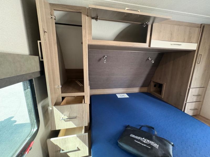 Let your imagination run wild with the possibilities that the Grand Design Imagine XLS travel trailer can provide! The Imagine XLS has been built with oversized tank capacities, an extra-large 2" fresh water drain valve, a ducted A/C system, a power tongue jack, and a heated and enclosed underbelly with suspended tanks. There is a designated heat duct to the subfloor and a residential ductless heating system throughout. For outdoor adventures, the electric awning with LED lights will enable you to stay protected, and the exterior speakers make any time outside a party. You will also love the XLS Solar Package that comes with a 165W roof mounted solar panel, a 25 Amp charge controller, a 12V 10 cu. ft. refrigerator, and roof mounted quick connect plugs!