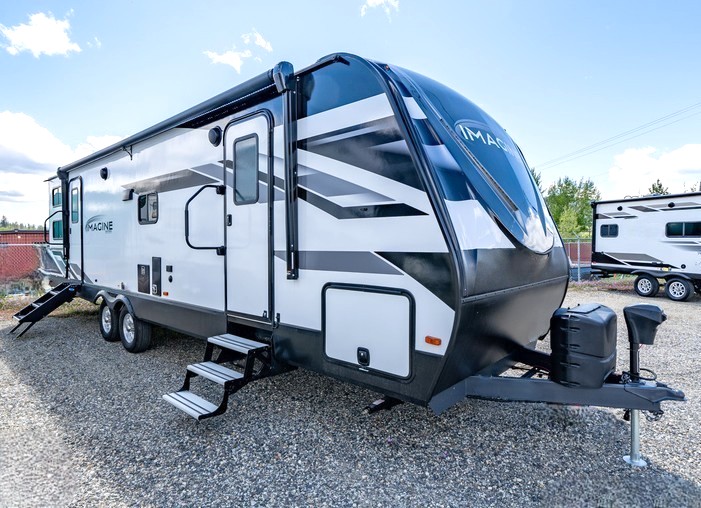 You will have an amazing amount of fun in this Imagine travel trailer! There is a tri-fold sofa and U-shaped dinette with removable ottoman that you can relax on while you watch the LED HDTV, and this trailer has two entry doors so that you can come and go as you please. The private bedroom contains the second entry door, so you can quickly head inside to grab a sweatshirt when you need one. While you're outside, you'll have a 21' power awning to protect you, and there is an exterior coax TV hookup, LP quick connect, and spray port to make your camping life easier. The interior walk-through bathroom connects the bedroom to the rest of the trailer, and the kitchen has a countertop extension so that you can chop veggies on extra counter space.