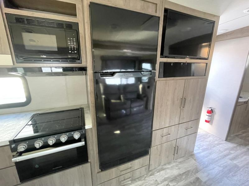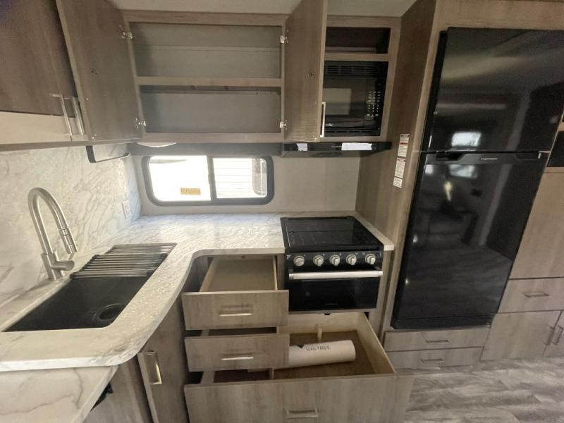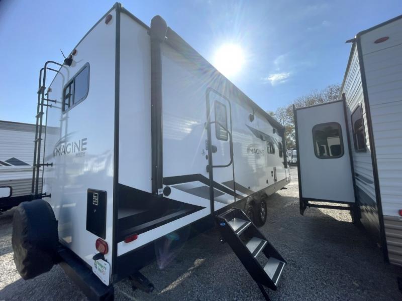 The Imagine 2600RB doesn’t just look good—it’s built for real-world adventure. The open floorplan offers seamless flow between the living, kitchen, and bedroom areas, while the large slide-out expands your space for entertaining or relaxing. The full kitchen includes a three-burner range with oven, microwave, deep stainless steel sink, and a refrigerator to keep meals simple and convenient on the go.