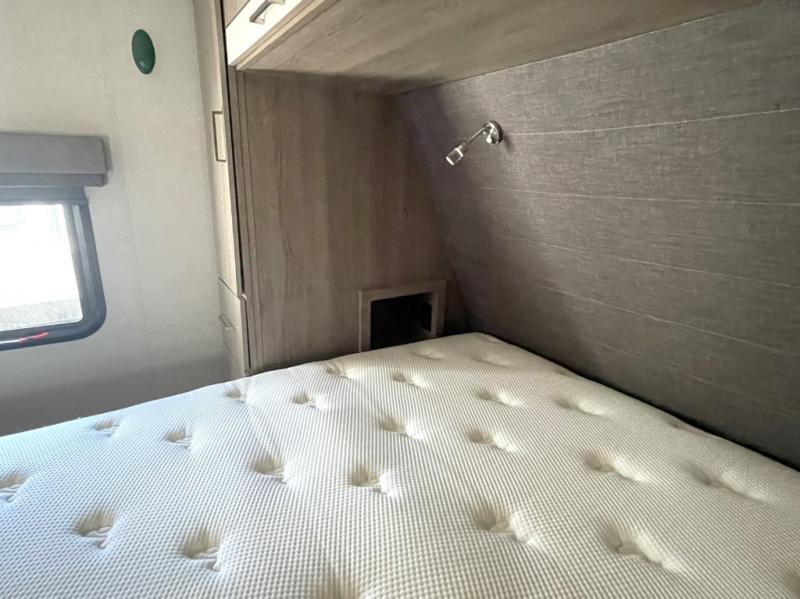 Private Front Bedroom – The 60” x 80” queen bed provides a restful retreat, with plenty of storage and privacy after a day of adventure.
