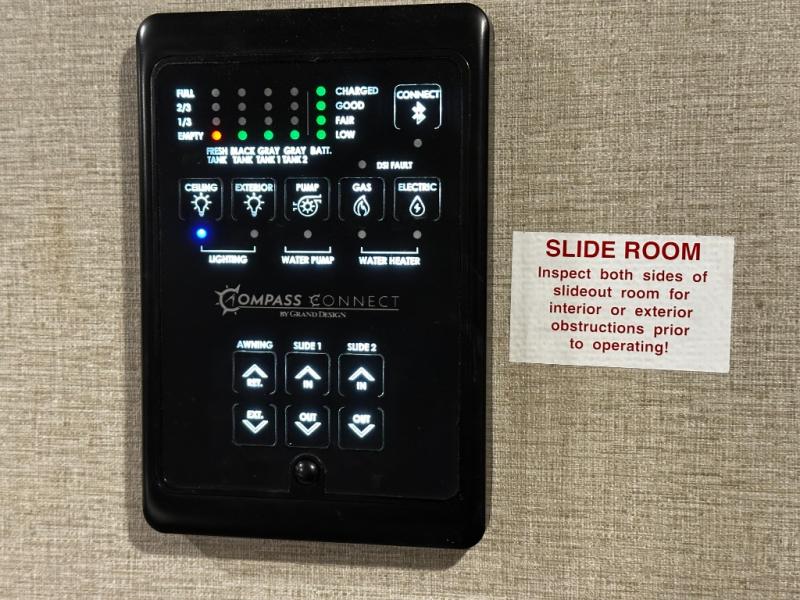 Spacious interior with opposing slides that maximize living and storage space.