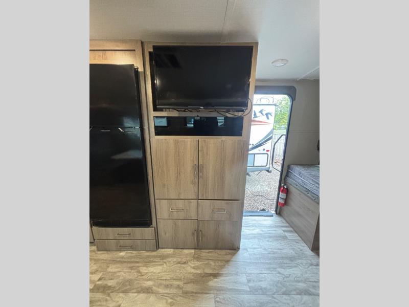What I'd improve: TV could have a bit more extension on the mount so that it could come out further and turn so that the kids in the back could watch TV from the bunks.10 years ago | Kevin W. from Midland, MI