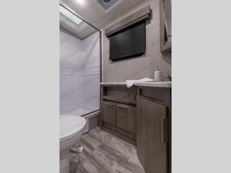 What I liked most: Bunk area area lifts up for additional storage which is very unique. Place for shoes. The bathroom shower surround has a brick molded design look.