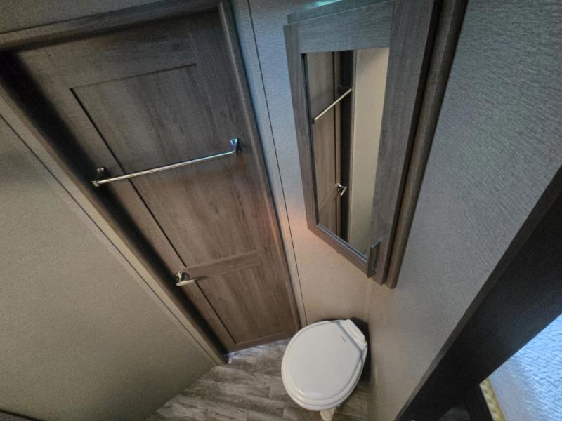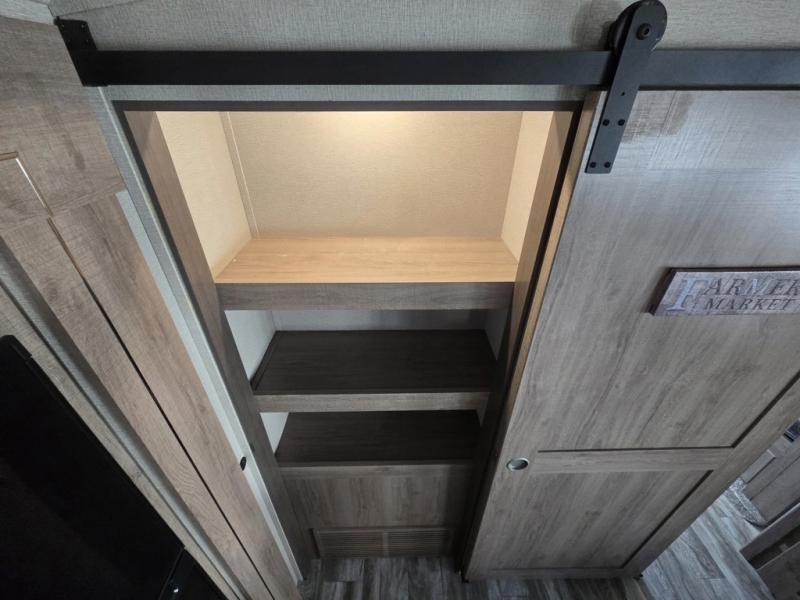 This Imagine travel trailer has an amazing amount of convenience with its two private sleeping spaces! There is a master suite in the front and a private bunkhouse in the back. The master suite contains a 60" x 80" bed with overhead cabinets and closets on either side of the bed. It also has the second exterior entry door as well as a private entrance into the dual-entry bathroom. The bunkhouse offers sleeping space for four with its four bunk beds, and it also has four drawers below the bottom bunks. The main living area has opposing slides which offer more space for all of these people to socialize in the evening, and the 40" LED HDTV on a swing arm will provide entertainment for everyone.