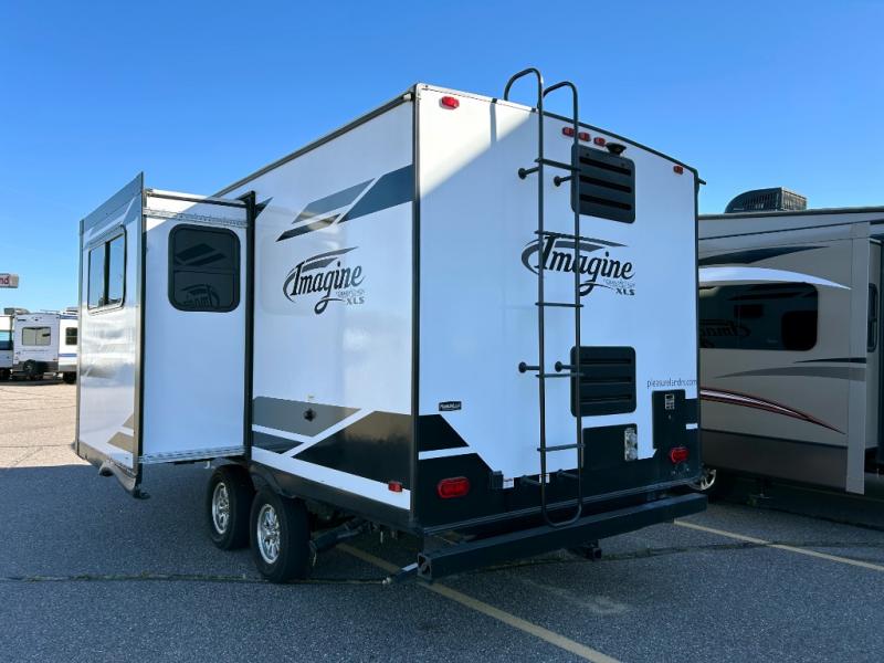 Let your imagination run wild with the possibilities that the Grand Design Imagine XLS travel trailer can provide! The Imagine XLS has been built with oversized tank capacities, an extra-large 2" fresh water drain valve, a ducted A/C system, a power tongue jack, and a heated and enclosed underbelly with suspended tanks. There is a designated heat duct to the subfloor and a residential ductless heating system throughout. For outdoor adventures, the electric awning with LED lights will enable you to stay protected, and the exterior speakers make any time outside a party. You will also love the XLS Solar Package that comes with a 165W roof mounted solar panel, a 25 Amp charge controller, a 12V 10 cu. ft. refrigerator, and roof mounted quick connect plugs!