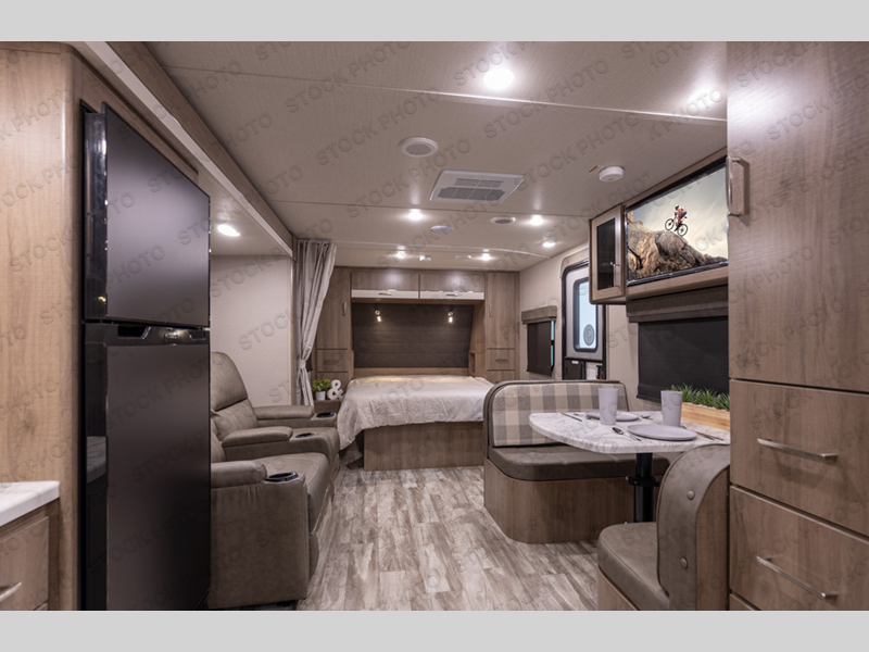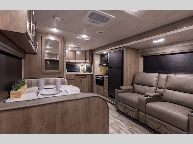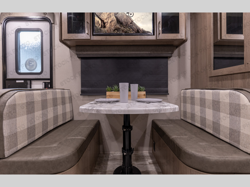 This Imagine XLS travel trailer has theater seating and a booth dinette that you can use any time you need a little break from the outdoors. If you want to come in and grab a coffee, put together a puzzle, or work on your itinerary for the week, just put up your feet and relax. You could even switch on the LED HDTV if you want a little entertainment. The front queen-size bed has a privacy curtain that you can draw to create a semi-private bedroom, and in the back of the trailer you will find the rest of your amenities, like the kitchen and the bathroom. The large slide makes it easy to enjoy spending your time indoors, but if you do want to get back outside, you can sit underneath the 18' electric awning for some shade.