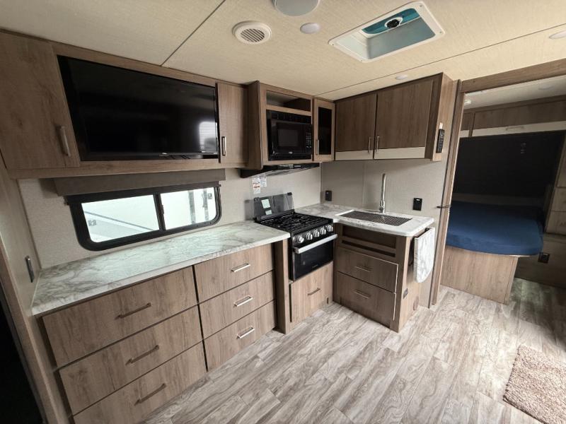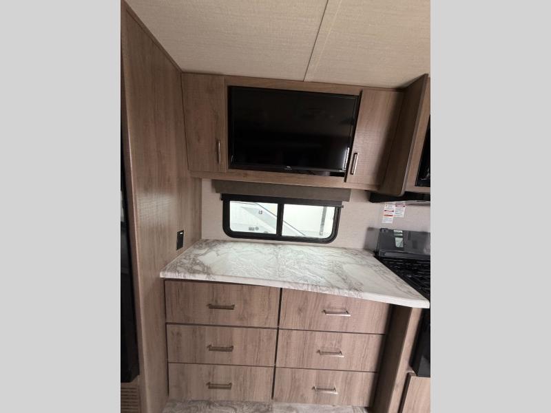 This Imagine XLS travel trailer was constructed just for you and your significant other! It has all of the essentials a couple could need, like a full rear bathroom with a residential walk-in shower, a theater dinette with removable table where you can eat your meals, a full kitchen with a microwave and three-burner range with an oven, and a private bedroom with a walk-around queen-size bed so that both of you have your own side. There are a couple of extras that will make your time away even more special, like the LED HDTV, the Bluetooth stereo, the USB charging station, and the exterior coax TV hookup.