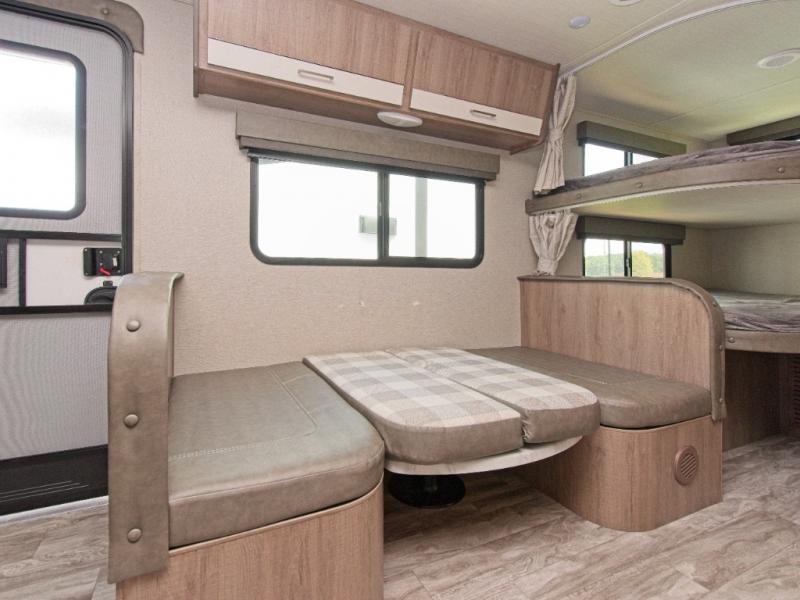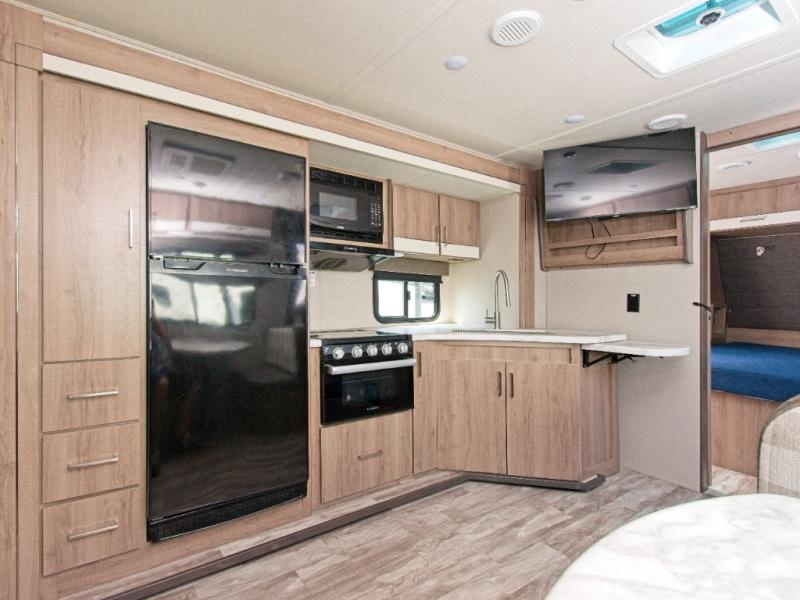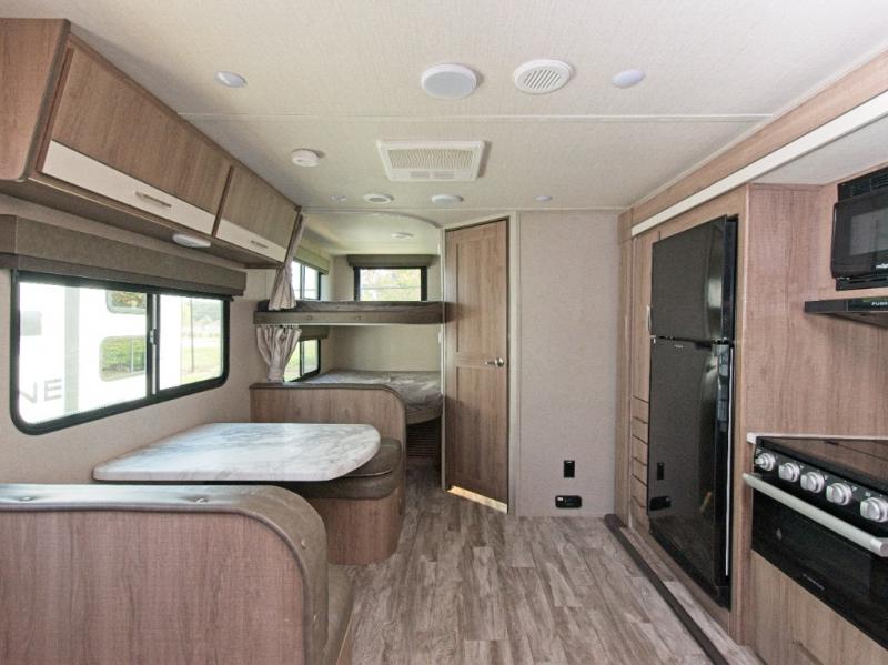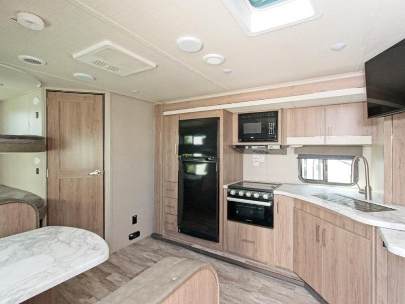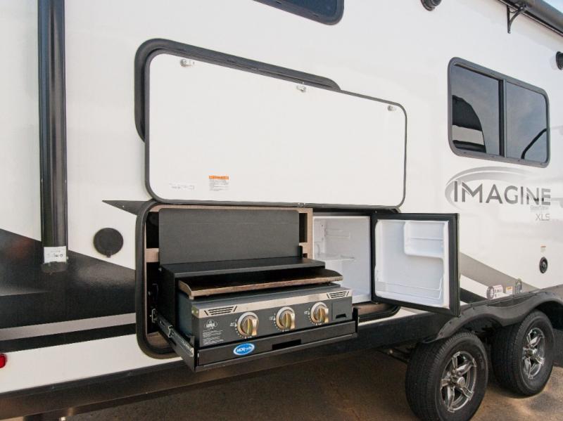 This lightweight yet spacious bunkhouse model is perfect for families or groups. With rear double-over-double bunks, a private front bedroom, and a versatile U-shaped dinette, the Imagine 23BHE maximizes space for both relaxation and functionality. The well-equipped kitchen includes modern appliances, ample counter space, and a large pantry, making meal prep easy whether you’re at the campground or off the beaten path. Outside, you’ll find pass-through storage, an outdoor kitchen, and a power awning—ideal for evenings spent under the stars.