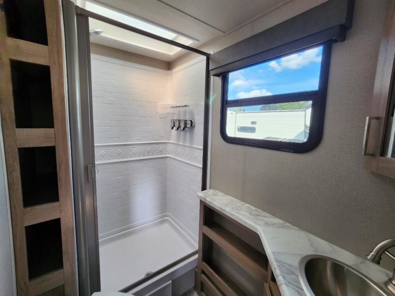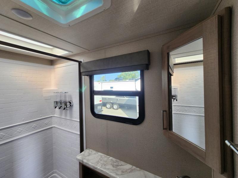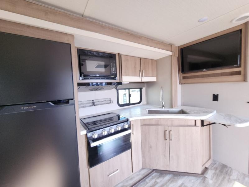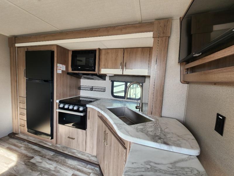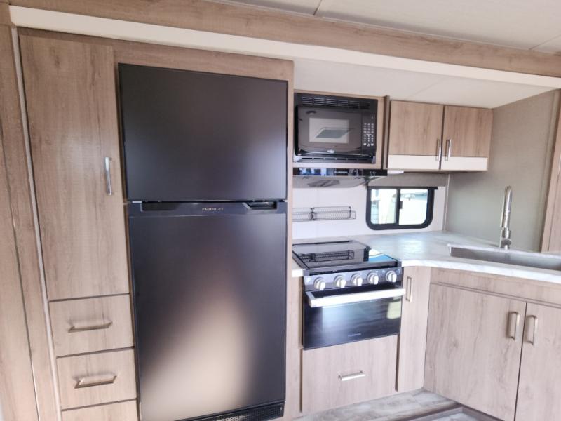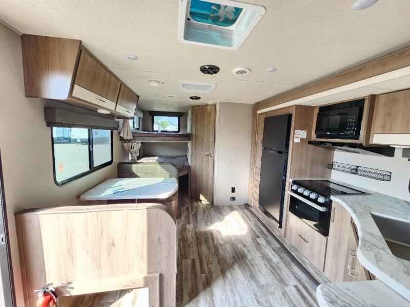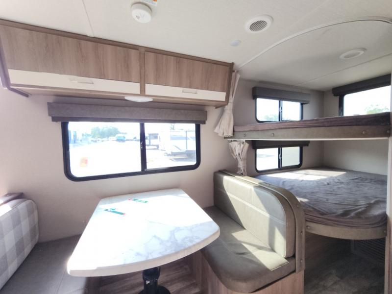 It won't be long before you have another trip with this Imagine XLS travel trailer on the agenda! You will find a walk-around queen-size bed up front in the private bedroom, and right next to the entry door is a coat closet so that you can hang up your coats when you come inside. The booth dinette is right next to the window, so you can look out at your surroundings while you enjoy breakfast. The double-size bunks have some privacy curtains, and the bunks are right next to the full bathroom for easy access in the middle of the night. The kitchen rests on the single slide which gives you more space to get dinner in the oven, and you can have some more prep space by using the flip-up countertop extension.