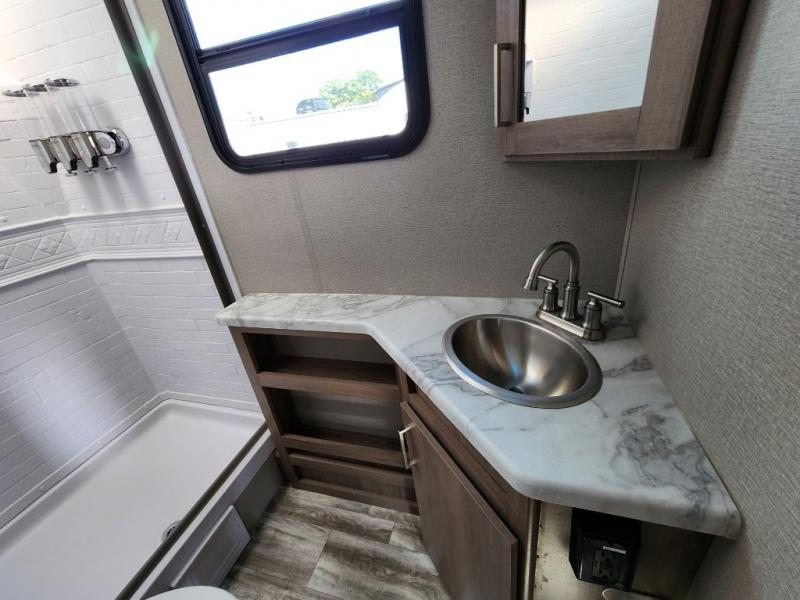 Let your imagination run wild with the possibilities that the Grand Design Imagine XLS travel trailer can provide! The Imagine XLS has been built with oversized tank capacities, an extra-large 2" fresh water drain valve, a ducted A/C system, a power tongue jack, and a heated and enclosed underbelly with suspended tanks. There is a designated heat duct to the subfloor and a residential ductless heating system throughout. For outdoor adventures, the electric awning with LED lights will enable you to stay protected, and the exterior speakers make any time outside a party. You will also love the XLS Solar Package that comes with a 165W roof mounted solar panel, a 25 Amp charge controller, a 12V 10 cu. ft. refrigerator, and roof mounted quick connect plugs!