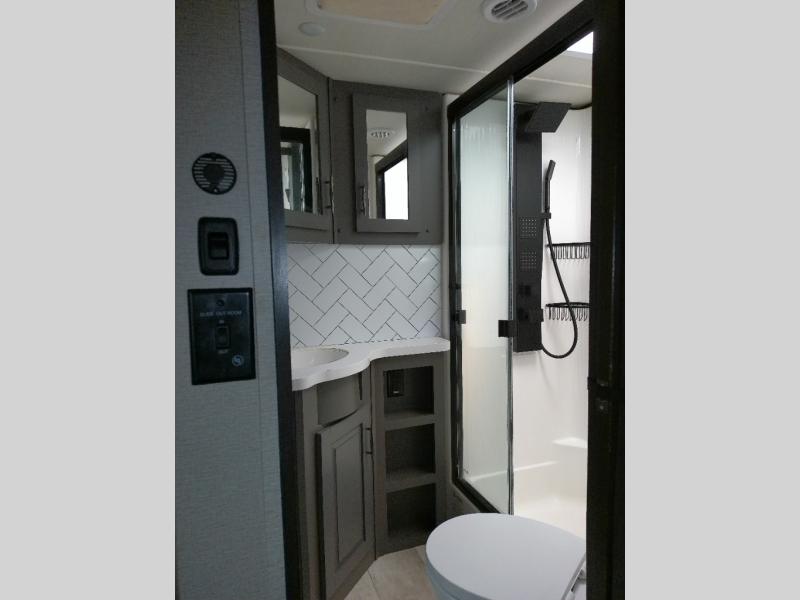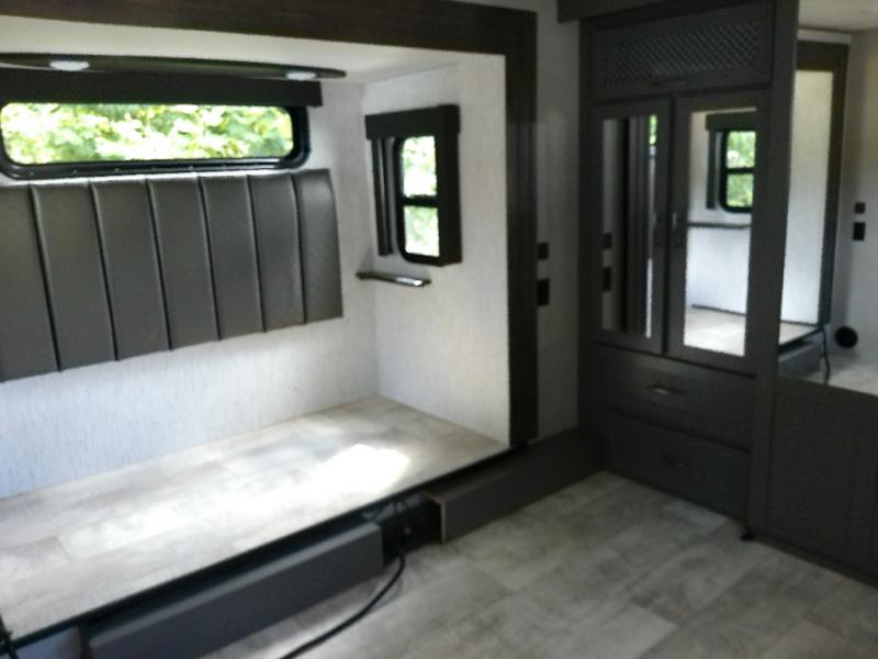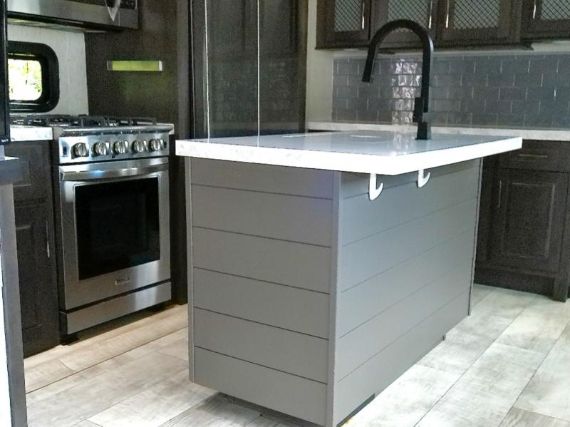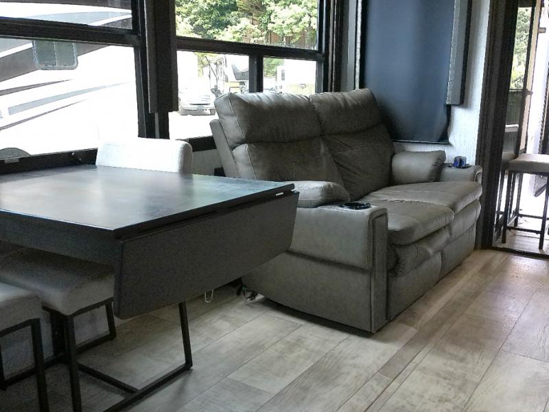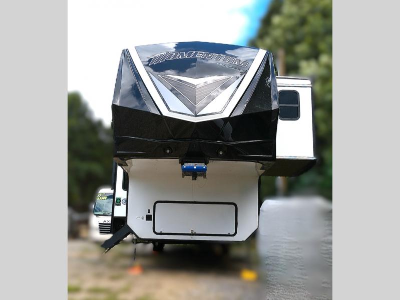 The Momentum fifth wheel toy haulers by Grand Design are built for four seasons of travel with your off-road toys and include luxurious accommodations throughout for extreme living! Each is constructed to a superior standard with the thermal roof design, the full-laminated walls, the triple insulated garage floor in most toy haulers, the insulated gooseneck and the Rail-Tite underbelly seat. The MORryde CRE3000 suspension system and rubber pin box, plus the upgraded axle hangers provide the performance and smooth towing you desire, while the interior offers luxury such as color changing LED accent lighting, raised panel hardwood cabinet doors with hidden hinges, a sofa with headrest and removable swivel tables which include heat, massage and LED lighting package, and a central vacuum system with tools and dust pan. Start your extreme playtime now with a Momentum!