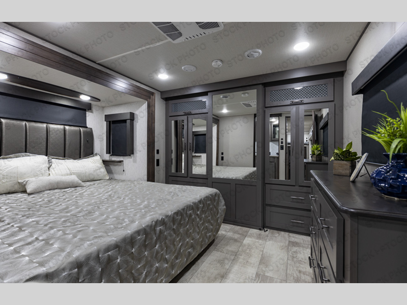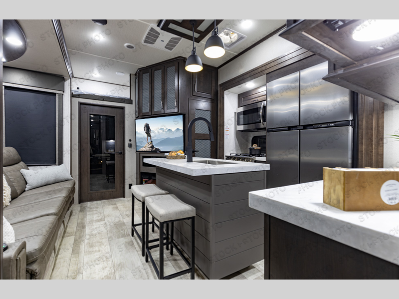 The Momentum M-Class fifth wheel toy haulers by Grand Design are lighter than the Momentum yet aren't lightweight on features when it comes to elegant design, luxury and a "Class" of its own! The chef-inspired kitchen provides a free-standing 3.7 cu. ft. gas range, a four burner cooktop with cast iron grill, an electronic ignition oven, and a digital display and interior oven light, plus 42,500 BTU of cooking power. The upgraded main bathroom offers solid surface counter tops, a three-jet shower panel system, a shower wand, and a teak bench seat. Each toy hauler includes a triple insulated garage floor, Tuff-Ply gas and oil resistant garage flooring, 2,500 lb. rated flush-mount tie-downs, and a Fast Ramp rear ramp door with two-sided lift-assist technology making it easy for one person to operate. And the MORryde CRE3000 suspension system and the rubber pin box, plus the upgraded axle hangers provide performance and smooth towing to your favorite destinations!