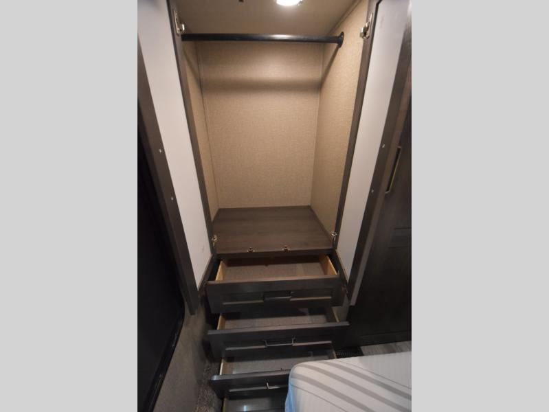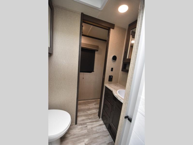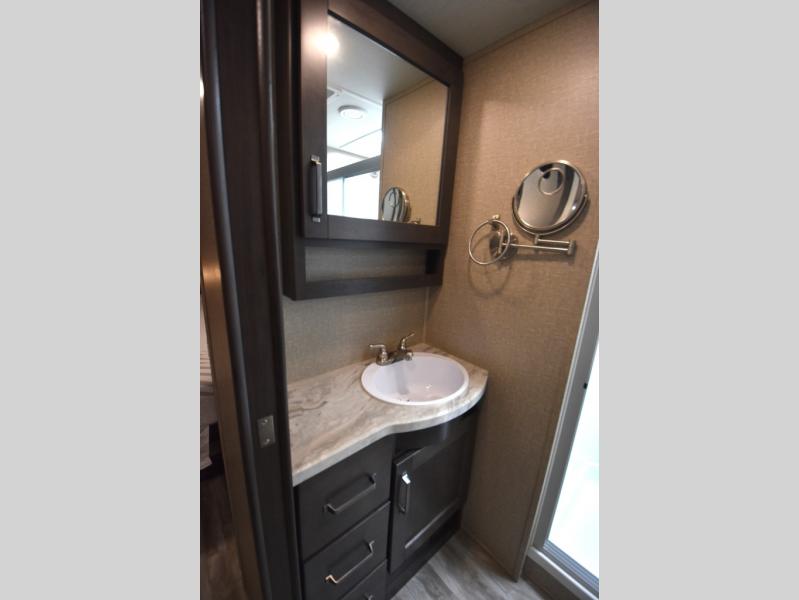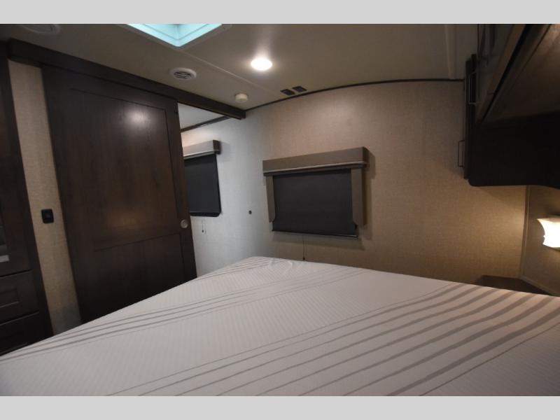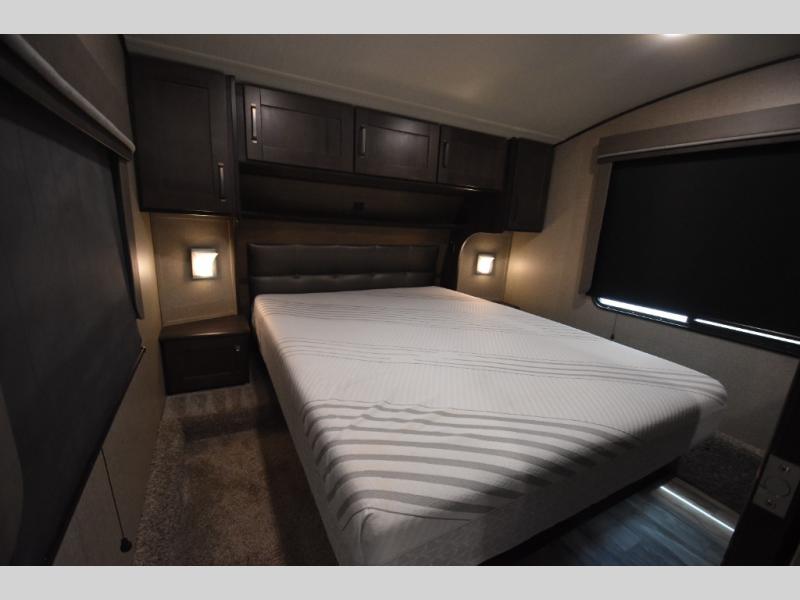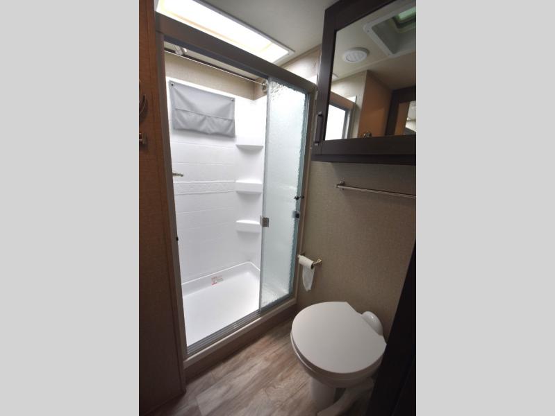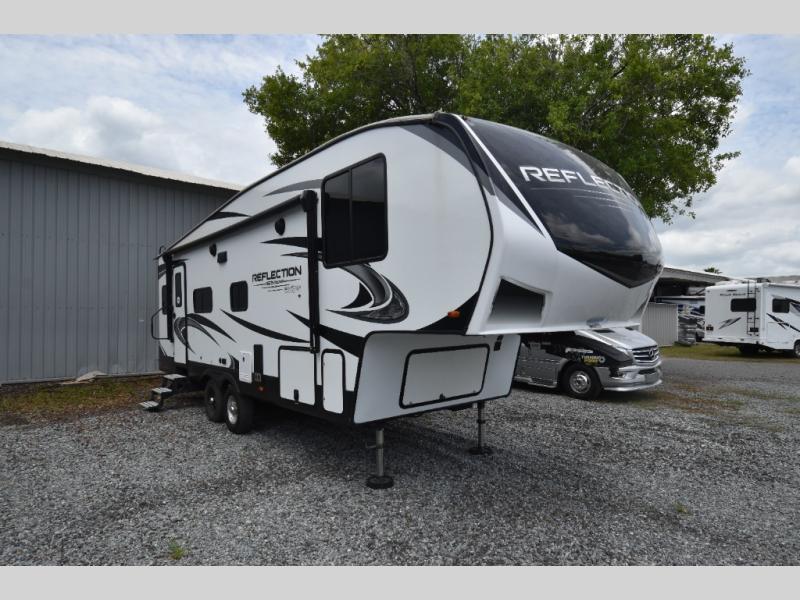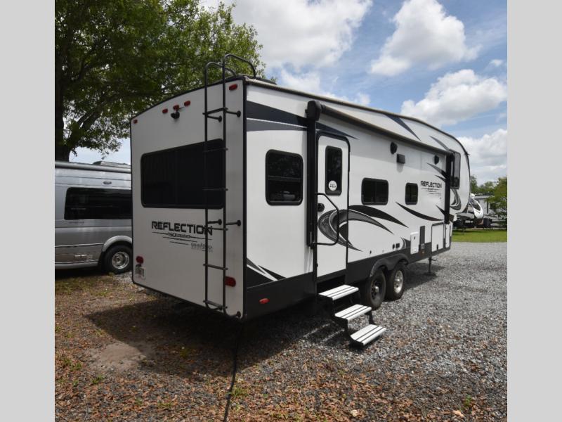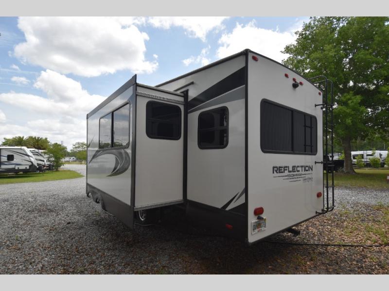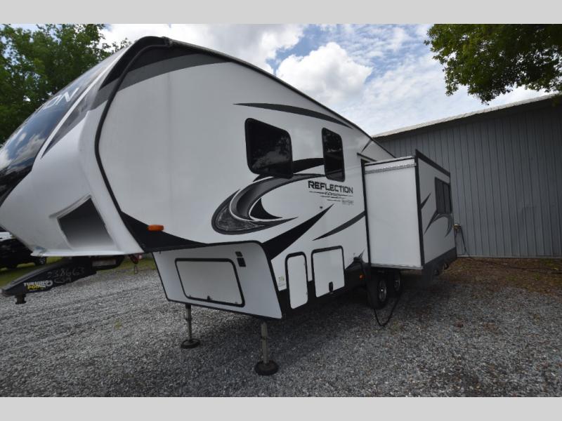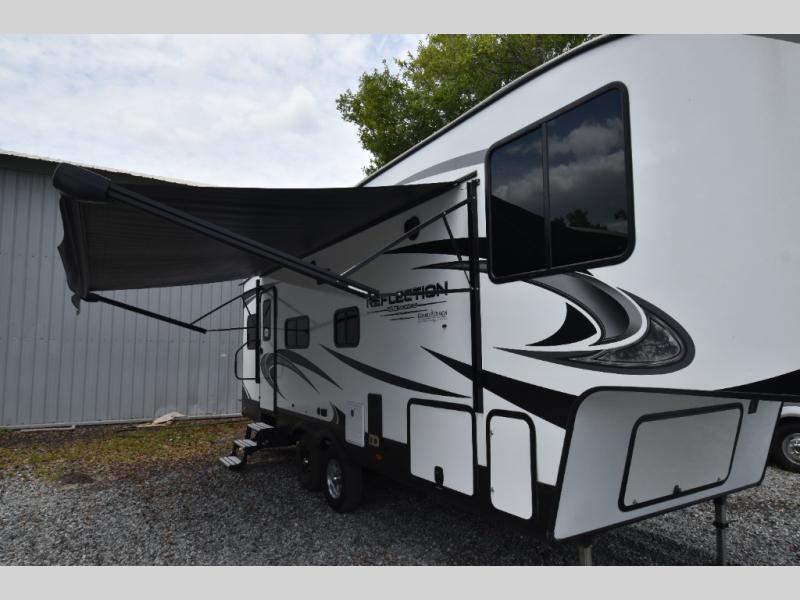 Feel right at home in this Reflection 150 Series with a private bedroom that includes a walk-around queen bed with storage on each side, windows, and a space savings sliding door. The full bathroom offers a walk-in shower, storage for your linens and a sliding door for easy access. When you get hungry, the cook will have an L-shaped kitchen area to make meals, plus full amenities including a 30" microwave, a flip-up counter extension, a pantry for your dry goods and a 16 cu. ft. refrigerator to store lots of food and cold beverages. You can dine at the rear U-shaped dinette lounge and enjoy the view out of all the windows or outside under the 18' electric awning. And the theatre seating will be a nice place to relax and watch the 40" LED HDTV.