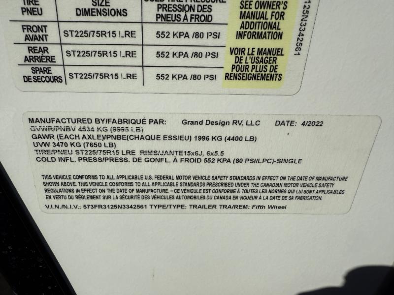 Used 2022 Grand Design Reflection 150 Series 260RD Fifth Wheel
