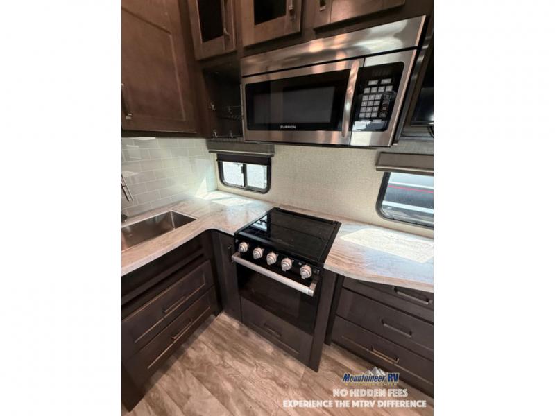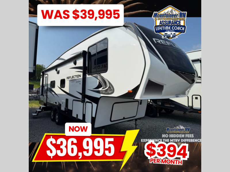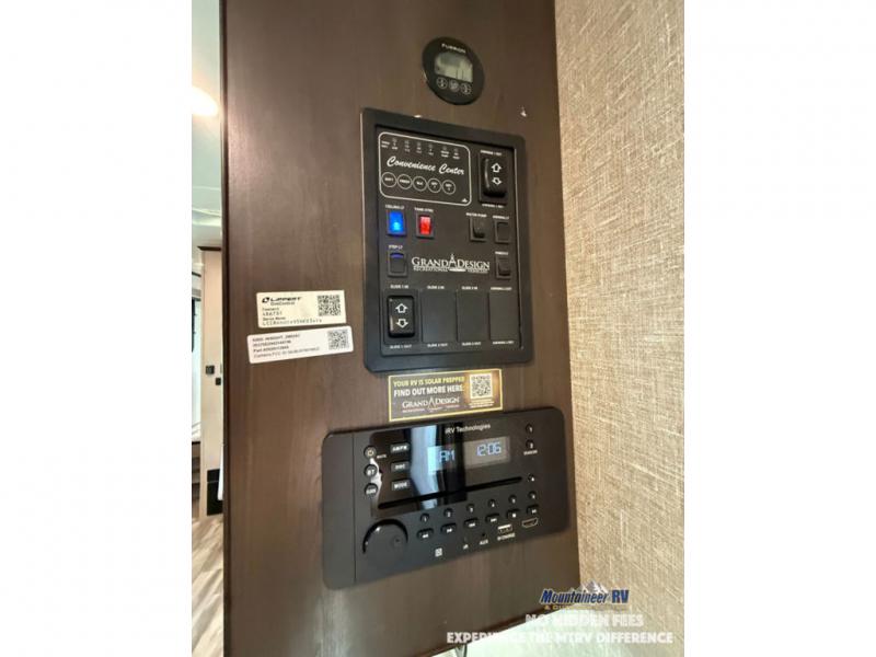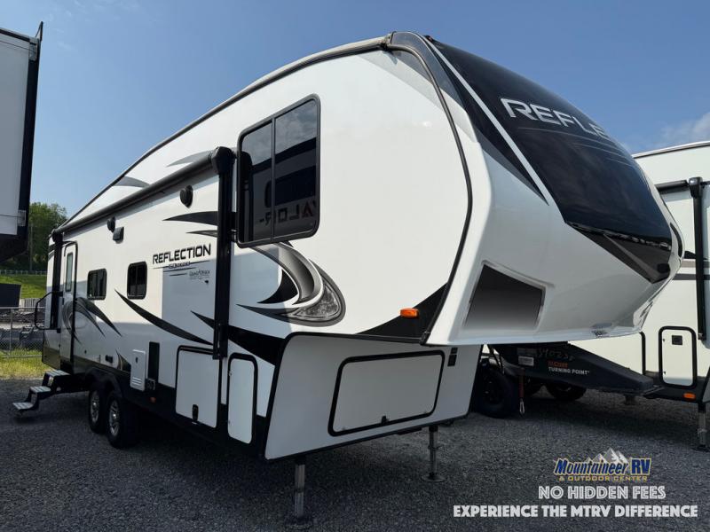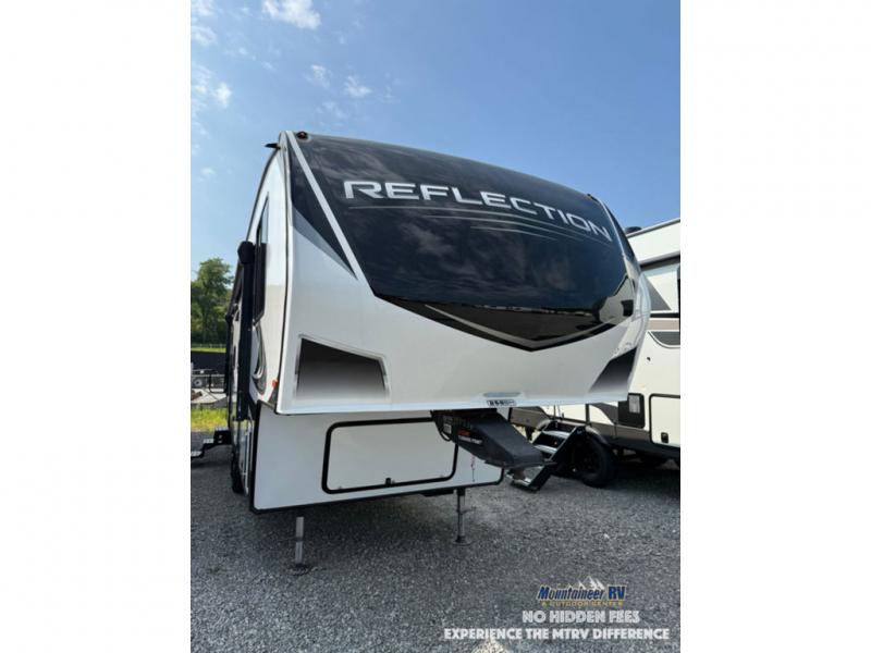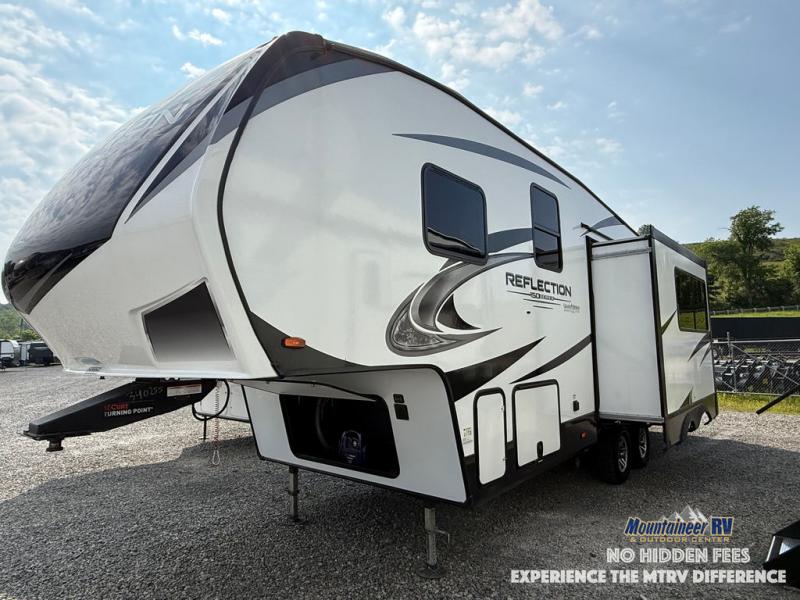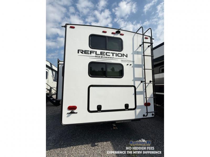 With any Reflection 150 Series fifth wheel by Grand Design, there is more available payload capacity and a broader range of half-ton trucks capable of towing this fifth wheel, and no slider hitch is needed thanks to the 90-degree turning radius which makes them short bed friendly and easier to tow. The mandatory Ultimate Power package provides a "One-Touch" automatic leveling system and a detachable power cord with LED light for easy setup, plus motion sensor pass-through lighting and entry lighting, and the Tire Linc TPMS will help you stay safe on the road. The interior offers residential luxury from the cabinetry and gunstock hardware plus the booth dinette to the residential-style window treatment. Make your refined decision today!