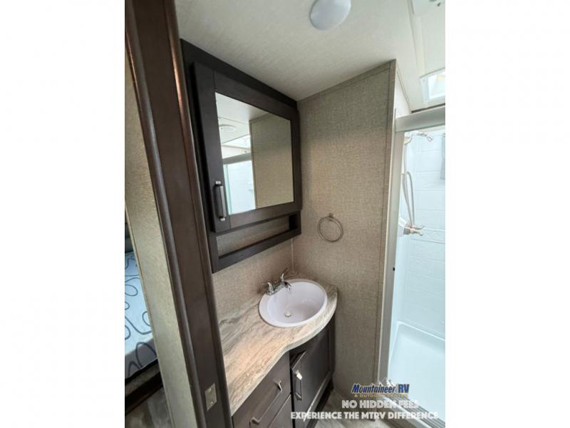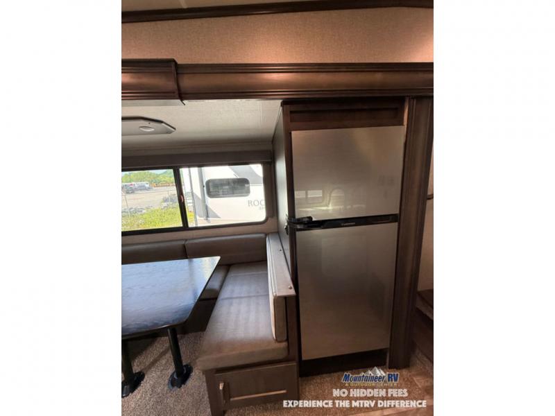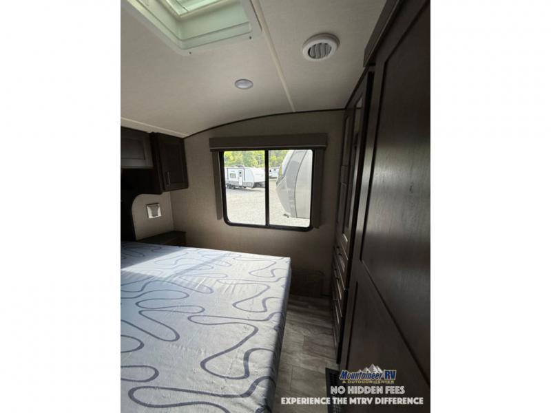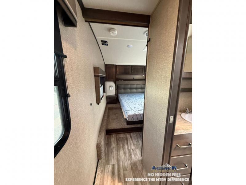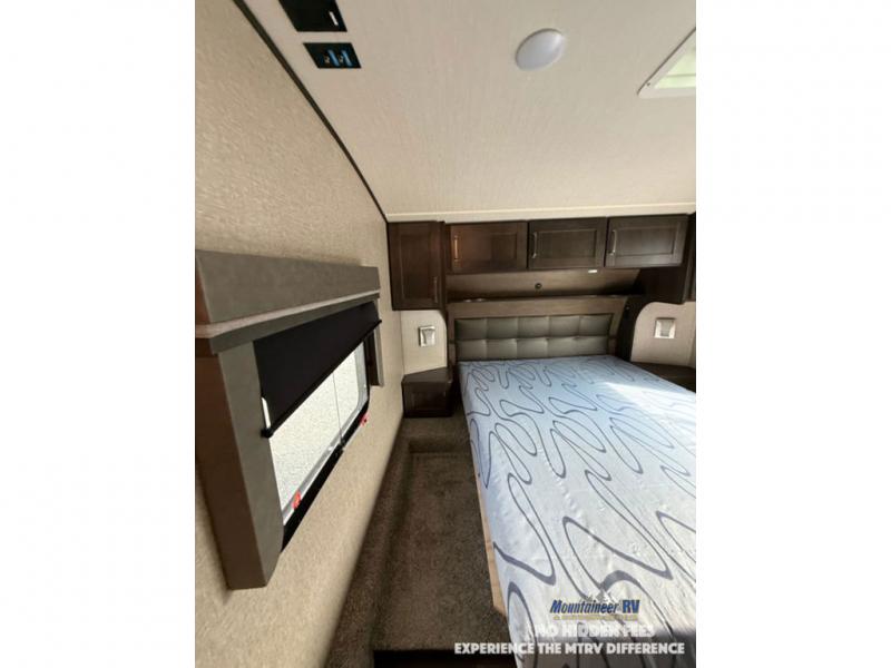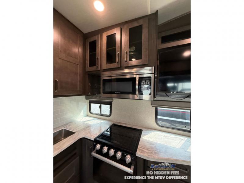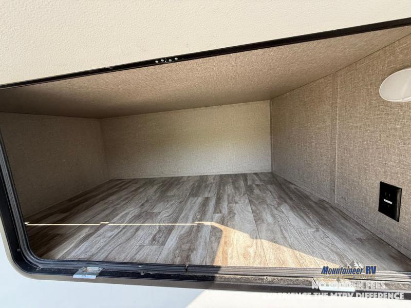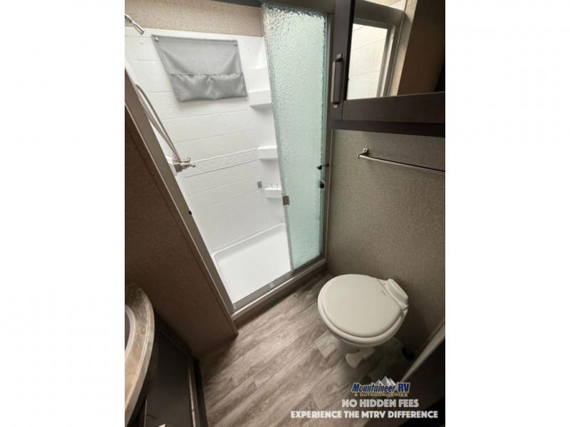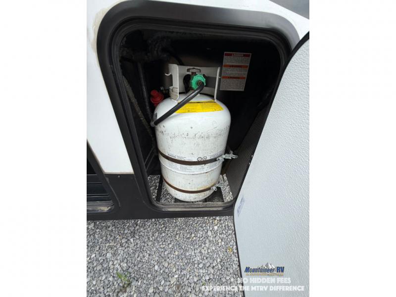 Get away from the hustle and bustle of the city every chance you get with this fifth wheel in tow! Once at your campsite, you can easily set up the single slide and the 20' electric awning and head out for a hike or relax on the U-shaped dinette and theatre seating while watching the 40" LED HDTV. The cook will love the L-shaped kitchen giving them their own space without interruptions and they will have full amenities to keep everyone fed. Everyone can take turns getting cleaned up in the walk-in shower in the full bathroom before calling it a night. The front bedroom offers a walk-around queen bed and plenty of storage, while the rear of this fifth wheel gives the kids or your friends 46" bunk beds to sleep on with their own storage near the step storage. And the U-shaped dinette offers extra sleeping space.