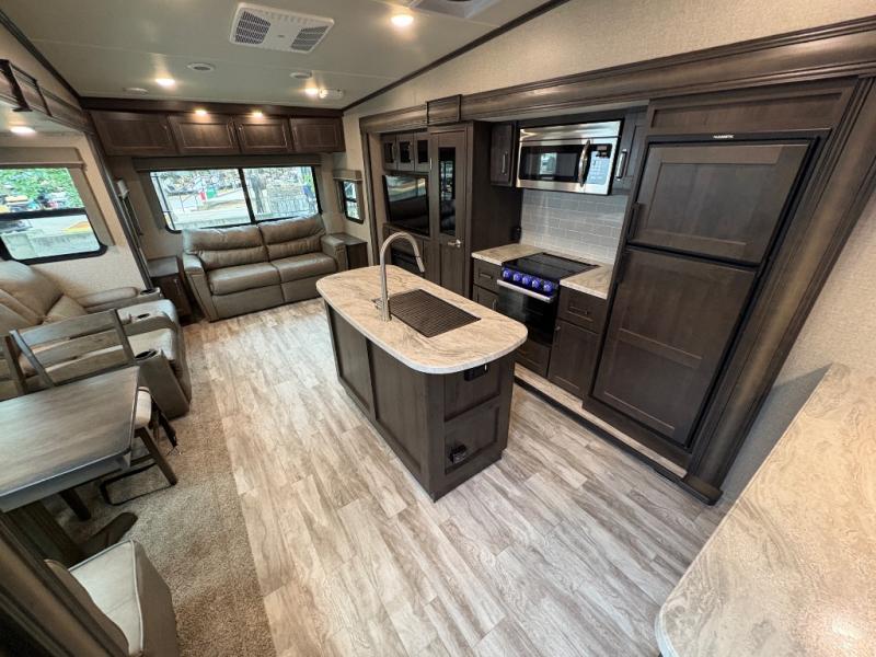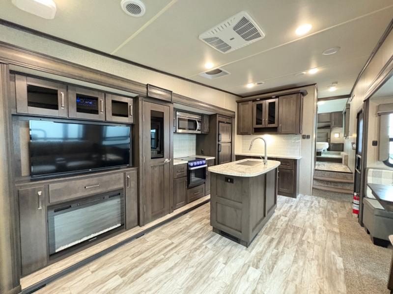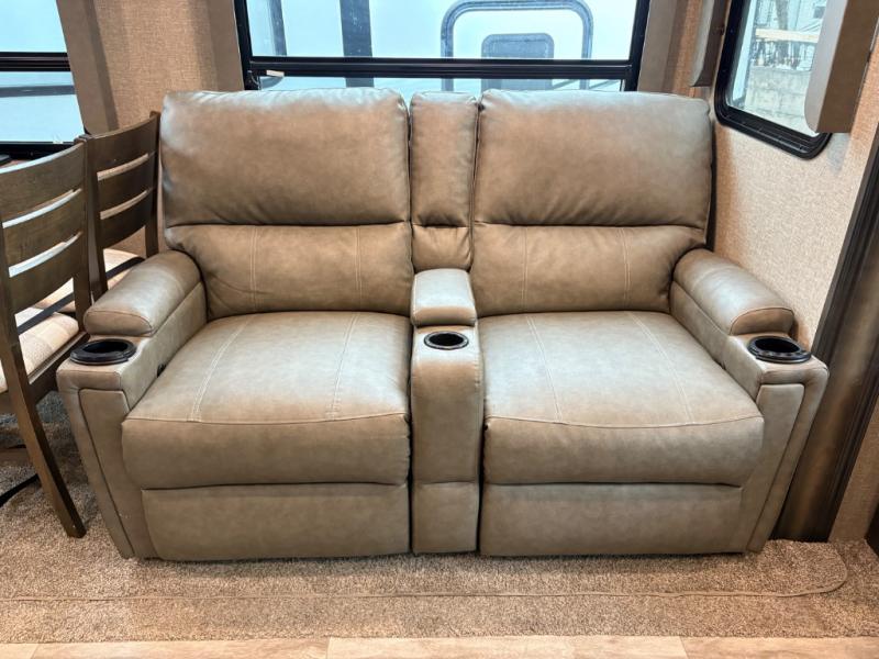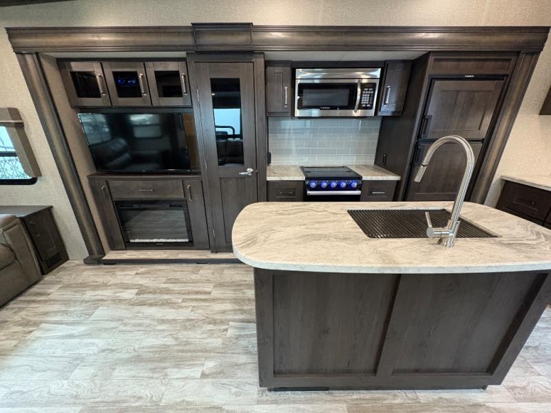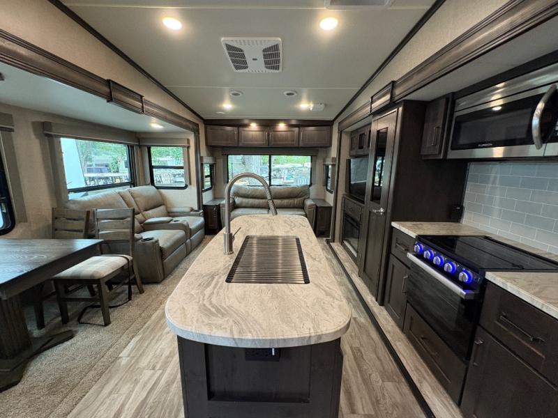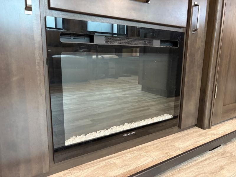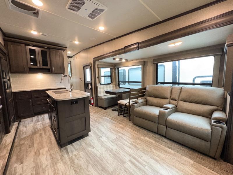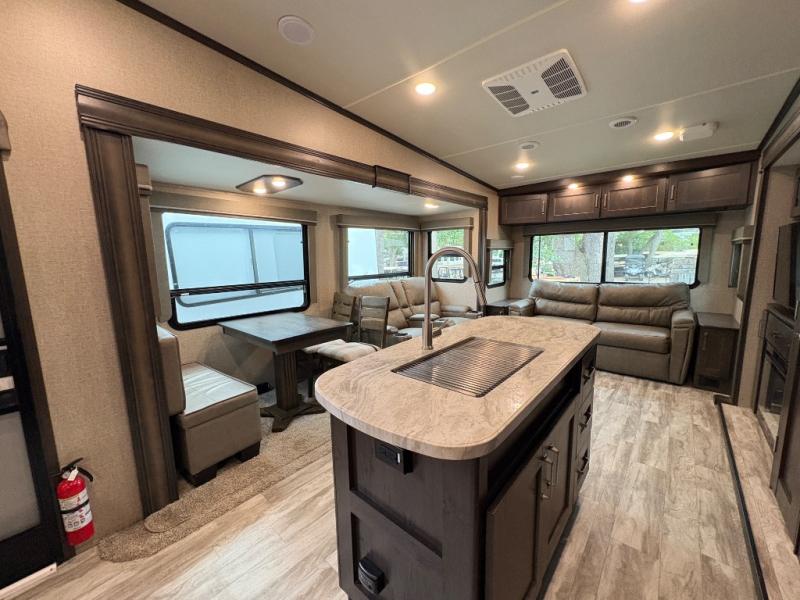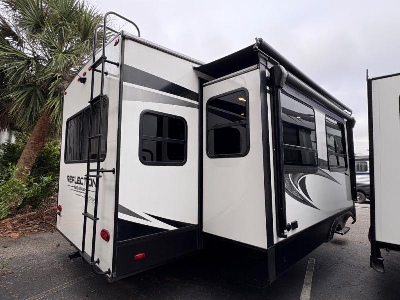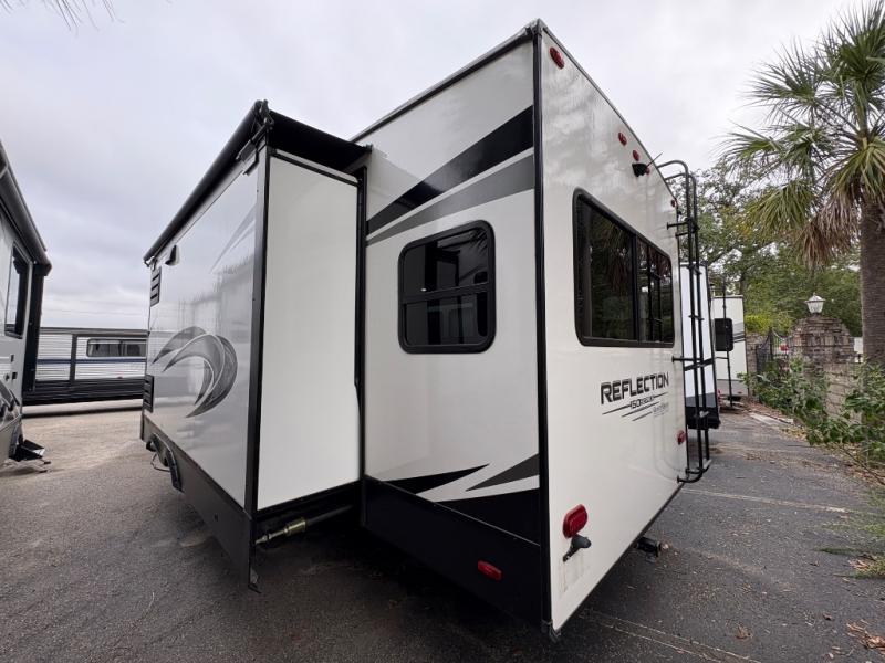 The Reflection 150 Series 295RL combines comfort, convenience, and smart design for your next adventure. With theatre seating, a kitchen island, and a cozy fireplace, the interior is perfect for relaxing or entertaining. Front private bedroom and full bath make overnight stays simple, while off-grid capabilities and heated pass-through storage enhance your camping experience.