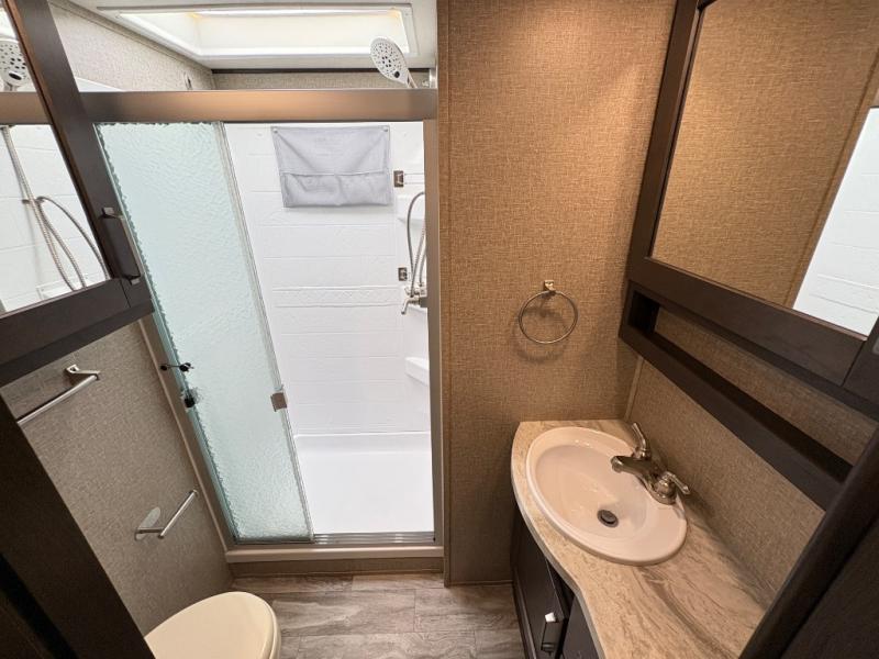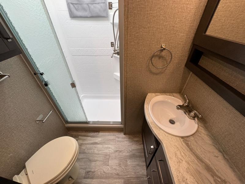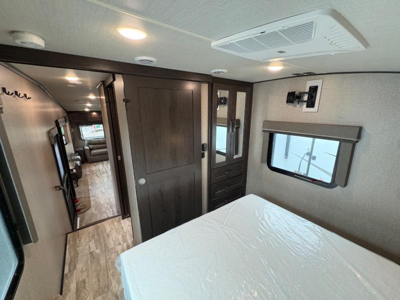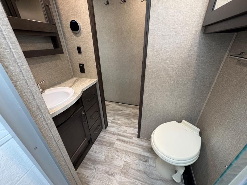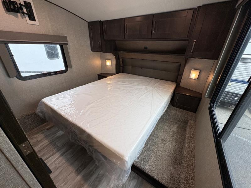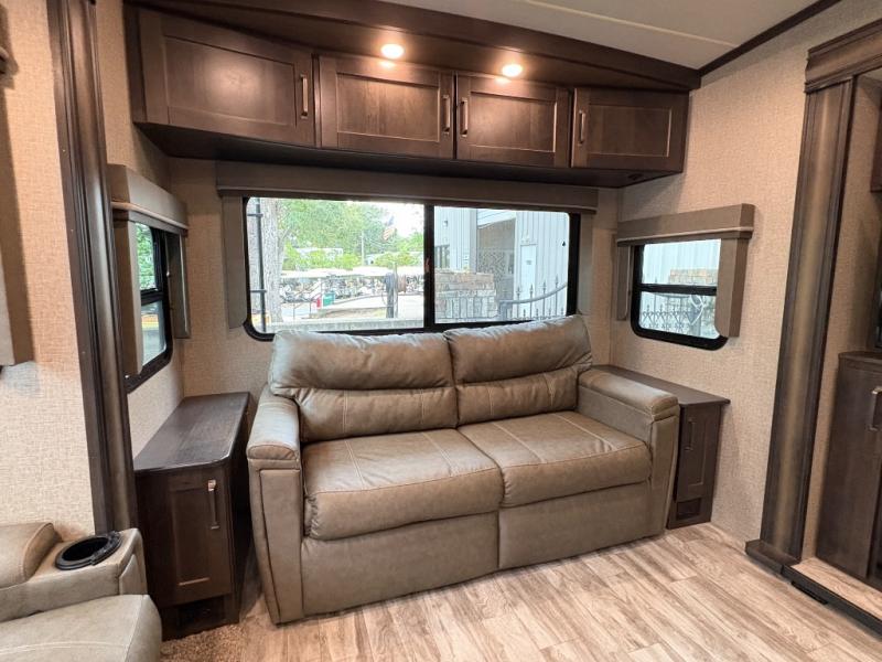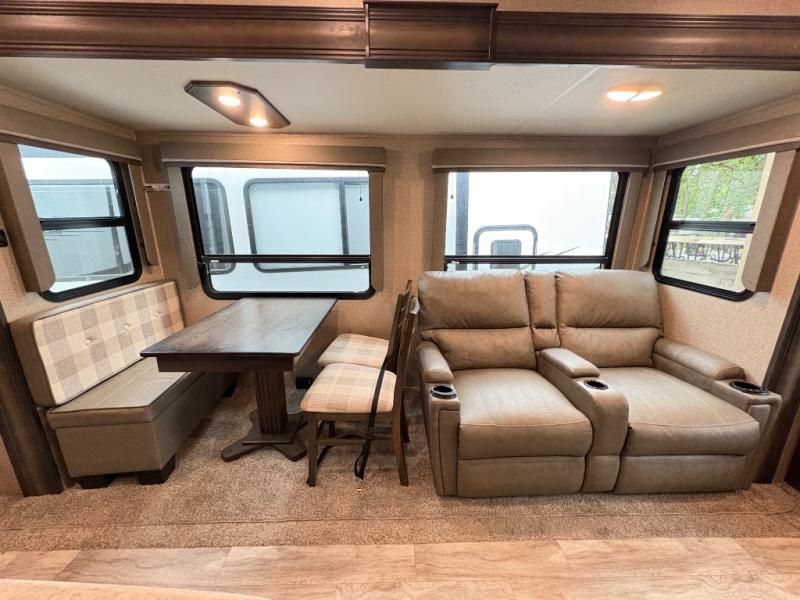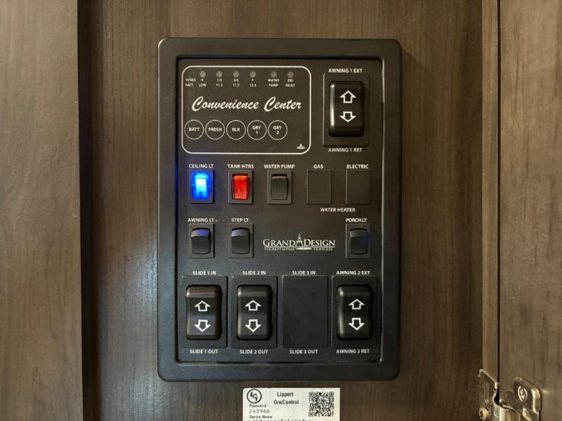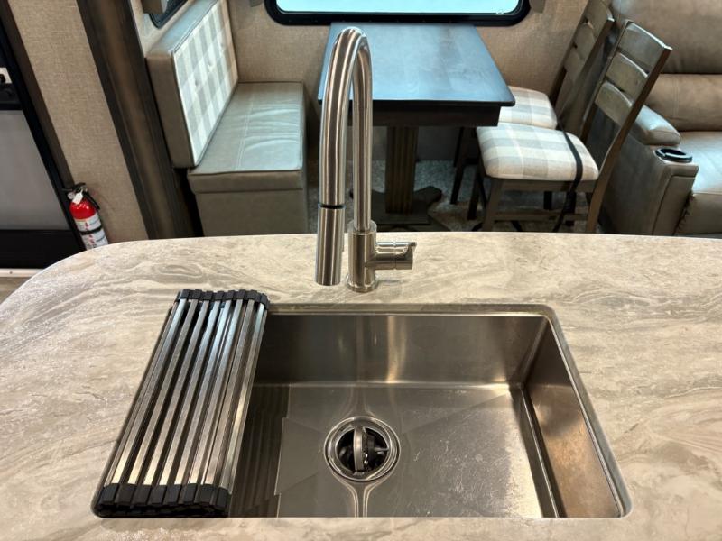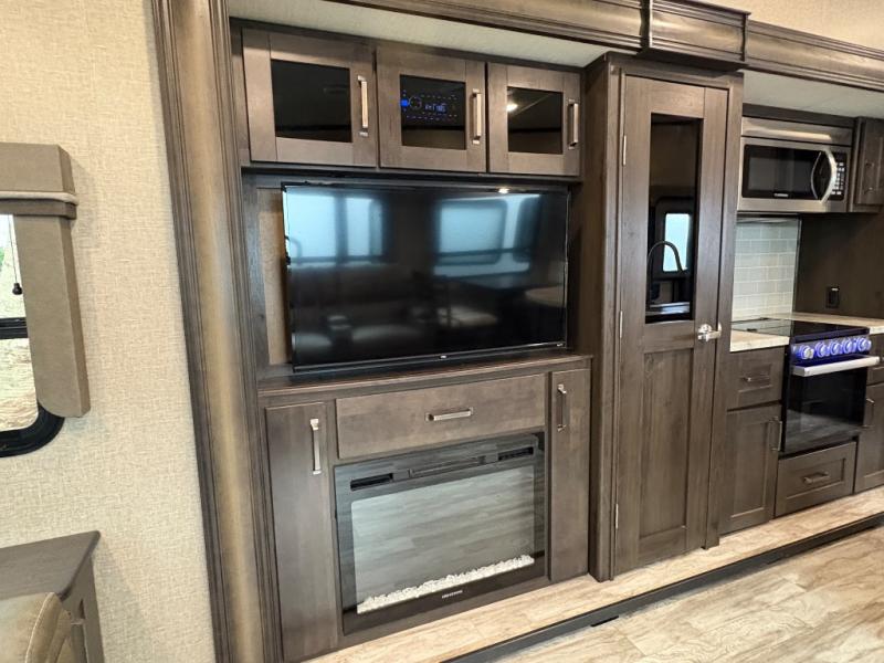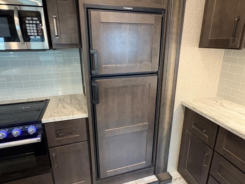 The Reflection 150 Series 295RL combines comfort, convenience, and smart design for your next adventure. With theatre seating, a kitchen island, and a cozy fireplace, the interior is perfect for relaxing or entertaining. Front private bedroom and full bath make overnight stays simple, while off-grid capabilities and heated pass-through storage enhance your camping experience.