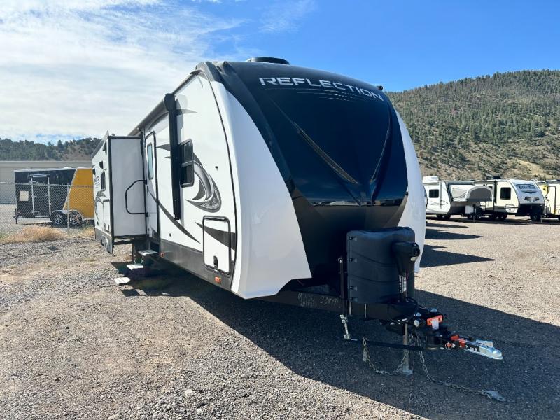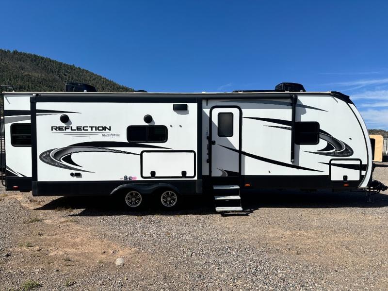 With any Reflection travel trailers by Grand Design, you will have a 165W solar panel for off-grid camping and a 50 Amp charge controller and inverter prep, a Universal All-In-One Docking Station, unobstructed pass-through storage, and Goodyear Endurance tires. Some other top features include the 30" stainless steel microwave, the maximum 7-foot headroom, and the ductless "Evenflow" heating system with no vents in the floor to collect debris. Each is constructed of gel coat exterior sidewalls, residential 5" truss rafters, walk-on roof decking, a fiberglass and radiant foil roof and front cap insulation plus laminated aluminum framed side walls, roof and end walls in slide rooms. Choose luxury, value and towability over all the others, take home a Reflection of your good taste!