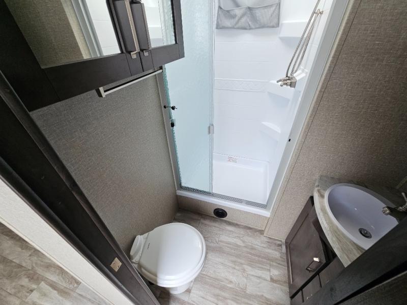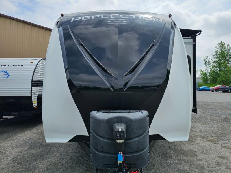 With any Reflection travel trailers by Grand Design, you will have a 165W solar panel for off-grid camping and a 50 Amp charge controller and inverter prep, a Universal All-In-One Docking Station, unobstructed pass-through storage, and Goodyear Endurance tires. Some other top features include the 30" stainless steel microwave, the maximum 7-foot headroom, and the ductless "Evenflow" heating system with no vents in the floor to collect debris. Each is constructed of gel coat exterior sidewalls, residential 5" truss rafters, walk-on roof decking, a fiberglass and radiant foil roof and front cap insulation plus laminated aluminum framed side walls, roof and end walls in slide rooms. Choose luxury, value and towability over all the others, take home a Reflection of your good taste!
