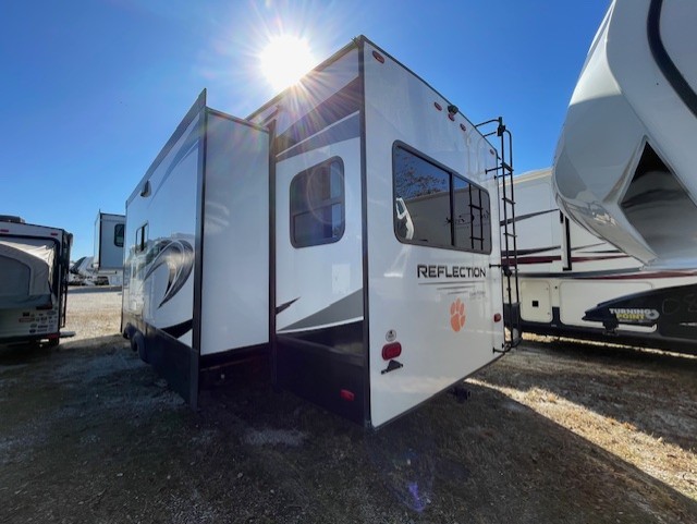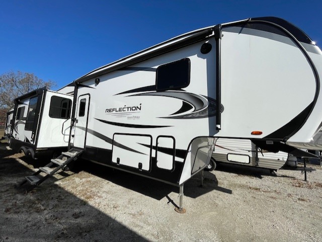 With any Reflection fifth wheels by Grand Design, you will have a 165W solar panel for off-grid camping and a 50 Amp charge controller and inverter prep, a Max Turn radius front cap for easy towing around town and into your campsite, a Universal All-In-One Docking Station, unobstructed pass-through storage, and Goodyear E-rated tires. Some other top features include a chef's kitchen with a 30" stainless steel microwave and residential cooktop, a USB charging station, and the ductless "Evenflow" heating system with no vents in the floor to collect debris. Each is constructed of high gloss gel coat exterior sidewalls, residential 5" truss rafters, walk-on roof decking, a fiberglass and radiant foil roof and front cap insulation plus laminated aluminum framed side walls, rear wall, roof and end walls in slide rooms. Choose luxury, value and towability over all the others, take home a Reflection of your good taste!