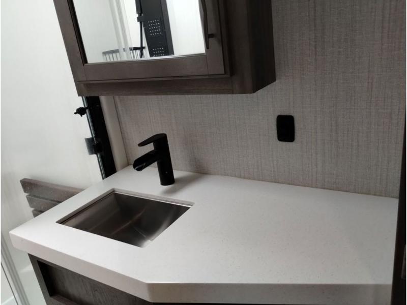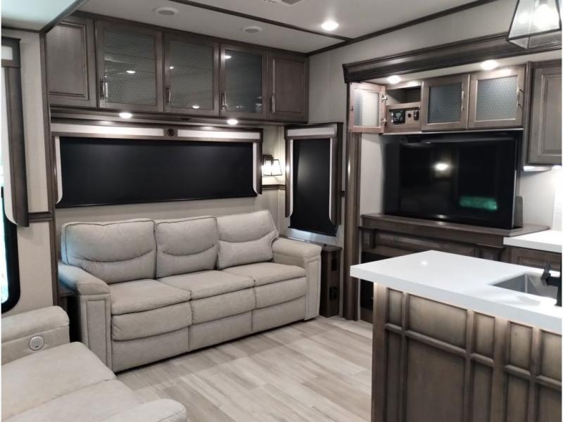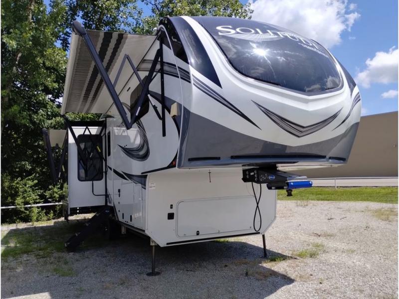 With any Solitude fifth wheel by Grand Design, you will get maximum insulation from the thermal roof design, the exclusive fully laminated walls, the triple insulated main floor, the Rail-Tite underbelly seal, the insulated gooseneck and the insulated baggage doors. The MORryde rubber pin box system utilizes a unique rubber shear spring to positively deal with rough towing and road shock, the Tire Linc TPMS system monitors pressure and temperature, and the 6-point hydraulic system allows you to setup easily. And the upgraded shower system, the hardwood window valances, the oversized kitchen pantry, the window above the master bed headboard, and the Rockford Fosgate stereo entertainment system with HDMI and App controls are a few more reasons you will love these extended-stay fifth wheels!