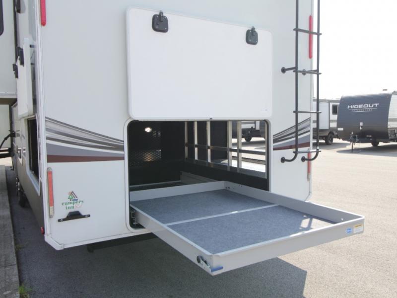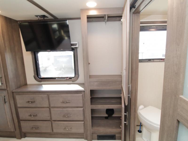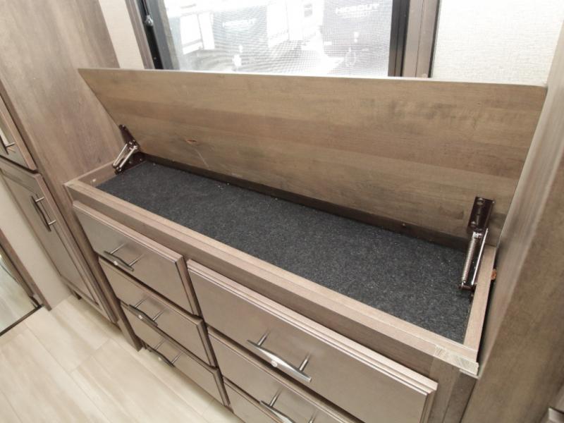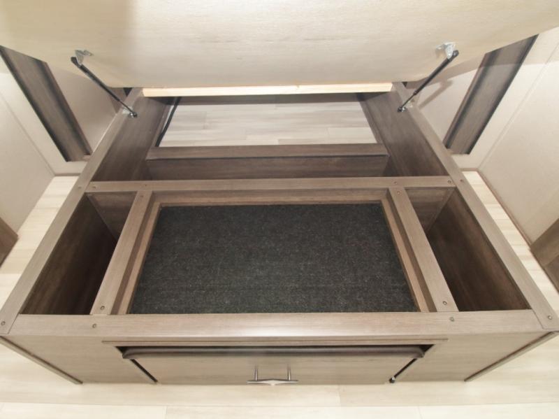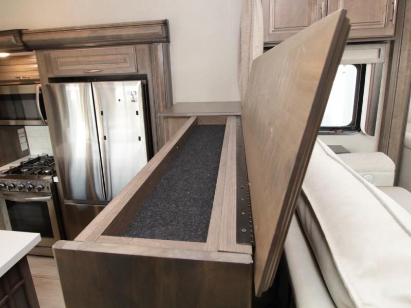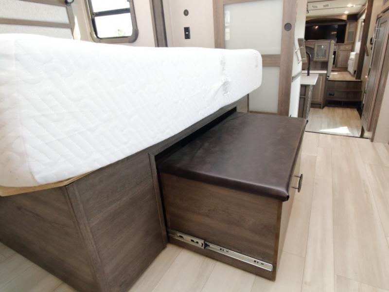 Storage is never an issue thanks to multiple interior cabinets, an entry closet, under-step storage, a pass-through compartment, and a rear sliding tray for larger items like golf clubs, grills, and camping gear.