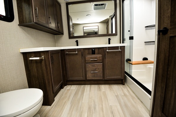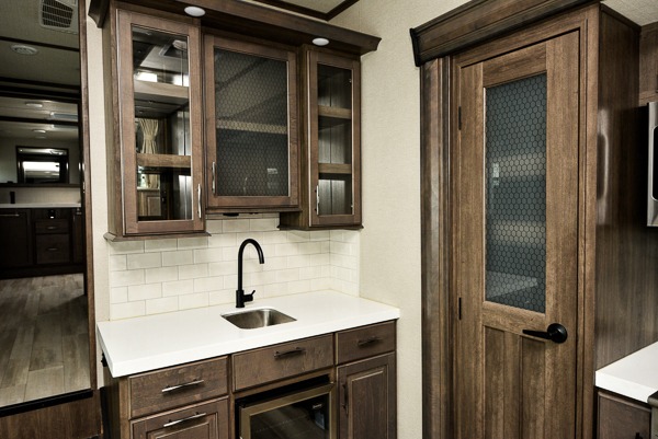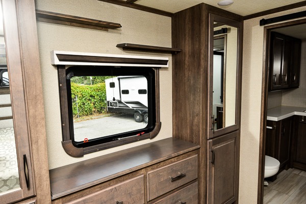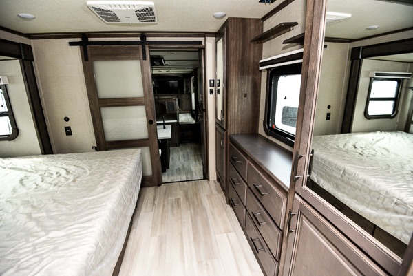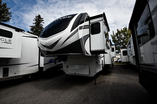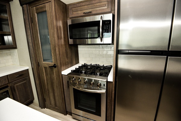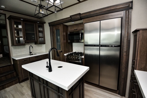 With any Solitude fifth wheel by Grand Design, you will get maximum insulation from the thermal roof design, the exclusive fully laminated walls, the triple insulated main floor, the Rail-Tite underbelly seal, the insulated gooseneck and the insulated baggage doors. The MORryde rubber pin box system utilizes a unique rubber shear spring to positively deal with rough towing and road shock, the Tire Linc TPMS system monitors pressure and temperature, and the 6-point hydraulic system allows you to setup easily. And the upgraded shower system, the hardwood window valances, the oversized kitchen pantry, the window above the master bed headboard, and the Rockford Fosgate stereo entertainment system with HDMI and App controls are a few more reasons you will love these extended-stay fifth wheels!