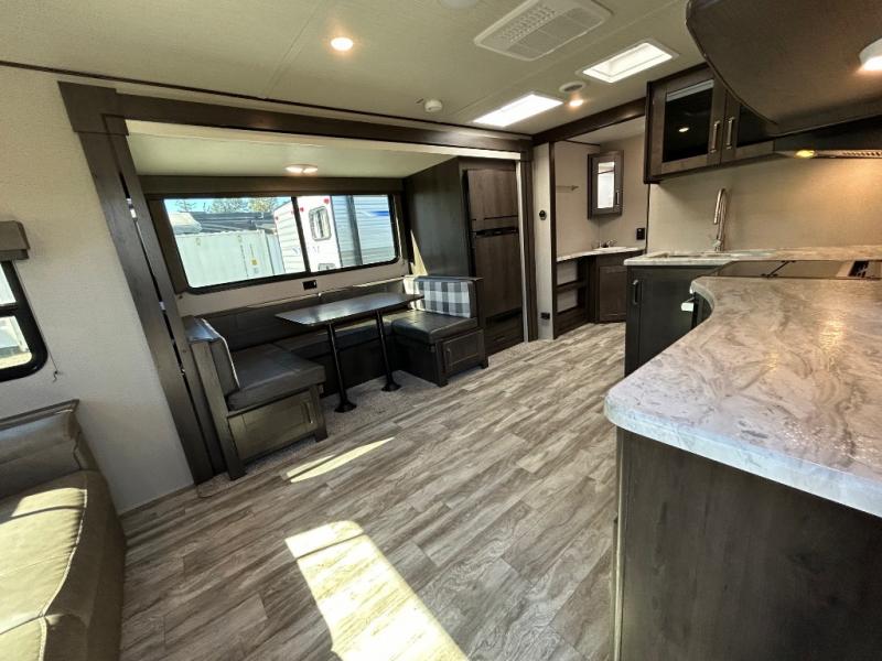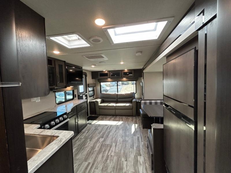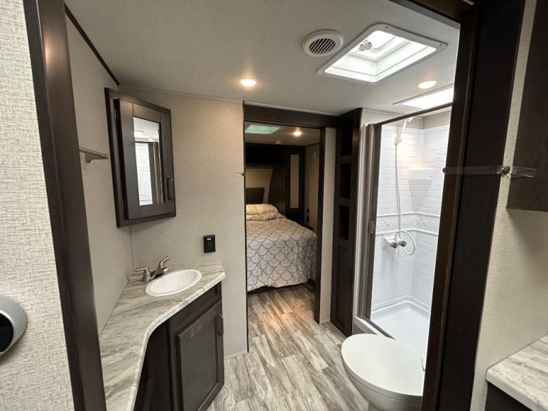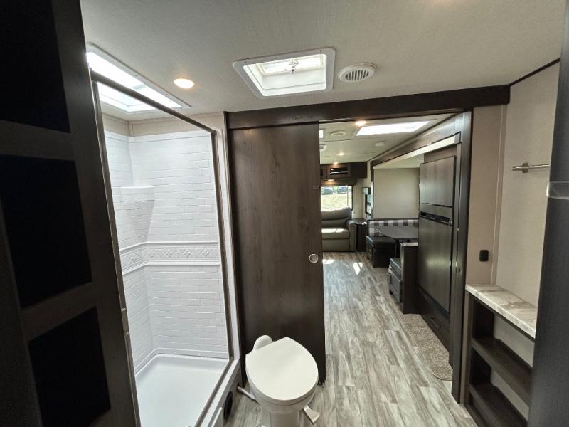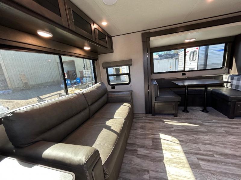 Other notable amenities include an AM/FM/Bluetooth stereo with exterior speakers, USB charging ports, a detachable power cord with LED light, and an all-in-one utility center. Every detail has been considered to deliver a user-friendly and reliable RV experience.