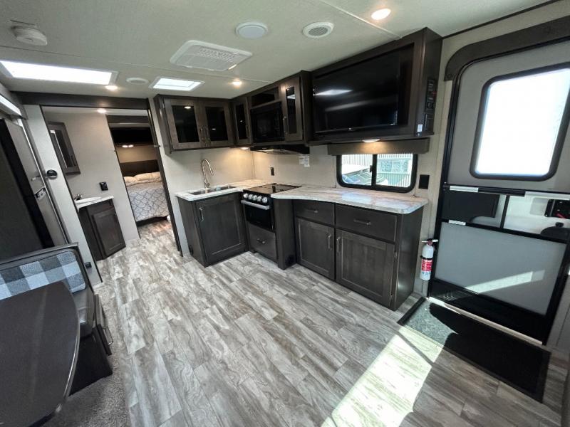 Designed with pet owners in mind, a built-in pet drawer under the refrigerator makes traveling with your furry companion even easier. Storage is abundant throughout the trailer, ensuring you have space for everything you need on the road.