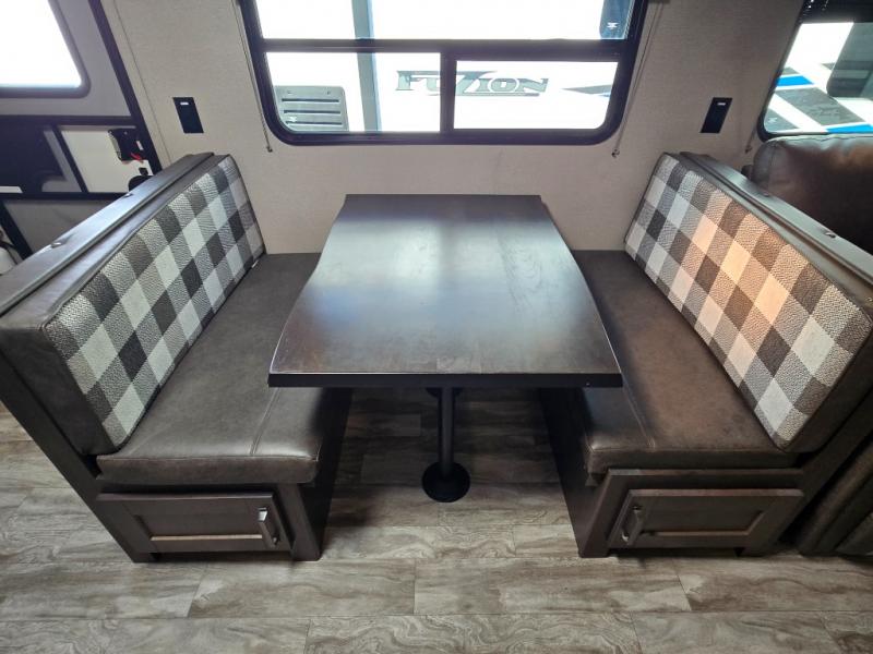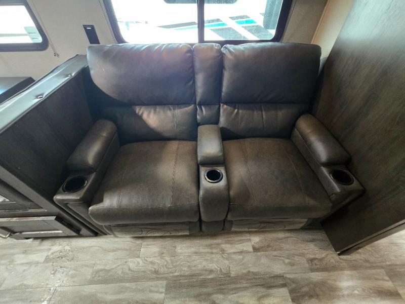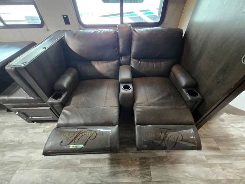 The full rear bath includes a walk-in shower and linen closet, offering residential-style comfort on the road. Relax in the theatre seating after a day of exploring, or opt for the available tri-fold sofa for extra sleeping space. The booth dinette adds versatility for dining or accommodating overnight guests.
