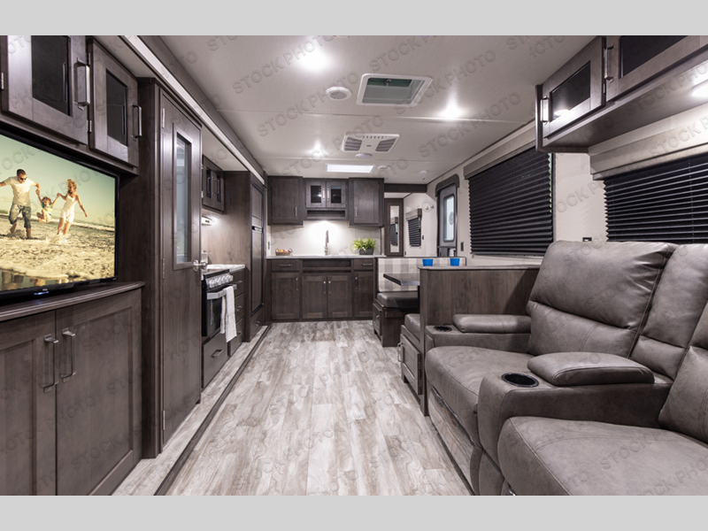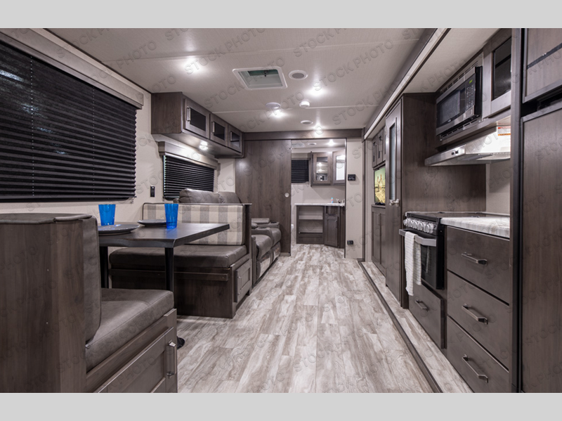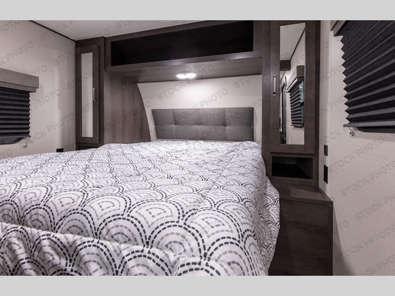 Your search for the perfect couple's trailer is over with this RV in tow! You will enjoy your own private bedroom up front with a queen bed, overhead storage, and TV prep if you choose to bring along your own television. The spacious full rear bath includes a linen closet and a walk-in shower to easily clean up each day. Relax on the theatre seating after a long day outdoors, or you can choose the optional tri-fold sofa if you need additional sleeping space. The booth dinette can also be used for an overnight guest or two little ones. This model also includes plenty of storage space and plenty of counter space to prep and cook at-home meals!
