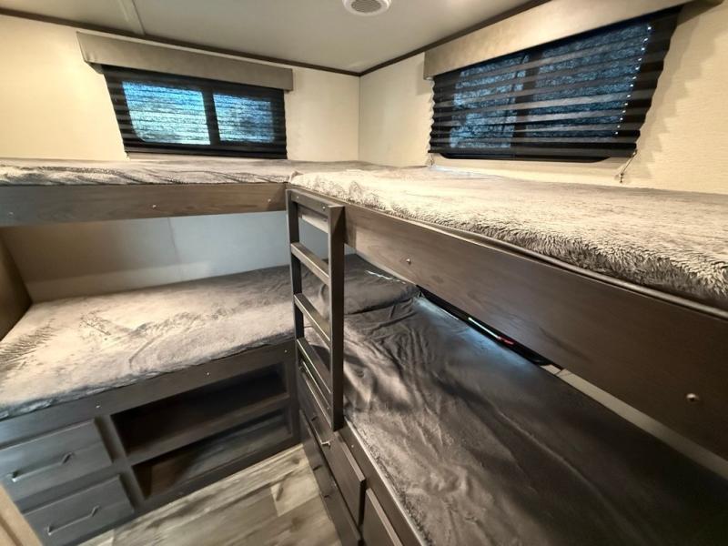 FREE DELIVERY & SETUP!! THIS BEAUTIFUL LIKE NEW 2022 GRAND DESIGN TRANSCEND XPLOR 321BH SIGNATURE ULTRA LITE IS A RV LOADED WITH LUXURY!!, SUPER CLEAN. IS A RV LOADED WITH LUXURY!! 37 LONG. 2 PRIVATE BEDROOMS , 4 REAR BUNKS, XL SLIDES. 2 COLD A/C. QUEEN MASTER SUITE. LARGE LIVING ROOM WITH A GREAT KITCHEN. DINETTE & A SLEEPER SOFA. FRONT PRIVATE BEDROOM. LARGE LIVING AREA WITH THEATER SEATING & RECLINERS. BIG FLAT SCREEN TV. BEAUTIFUL KITCHEN with residential refrigerator, STAINLESS STEEL APPLIANCES, and LOTS OF CABINET STORAGE. 4 SEASONS PACKAGE WITH UPGRADED INSULATION. DESIGNED FOR YEAR-ROUND COMFORT IN HOT OR COLD CLIMATES. 2 COLD A/C UNITS. 200W FACTORY SOLAR, 50AMP POWER. OUTDOOR STORAGE. OUTDOOR KITCHEN, SOLID STEP ENTRY. DUAL AWNINGS WITH LED LIGHTS. LUXURY FEEL THROUGHOUT!! ONLY 7738 UVW. OUR PRICE: $25,995. WE HAVE MULTIPLE RV TO CHOOSE FROM!! We are located in KENNEDALE, TX. We show RVs 7 DAYS A WEEK BY APPOINTMENT. Call BRET 8178050067 or AMY 8176584633. FREE DELIVERY TO ALL 48 STATES. WE INSPECT & GO THROUGH ALL TRAIL