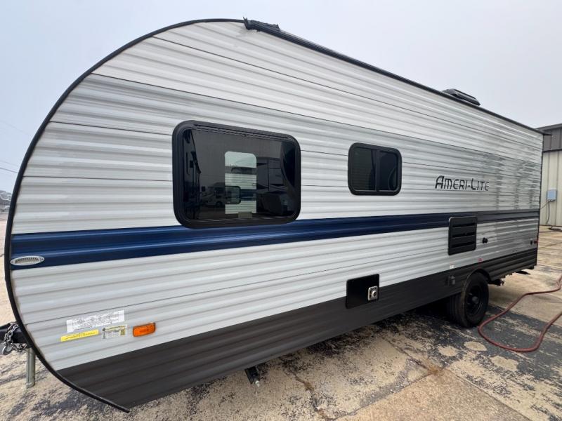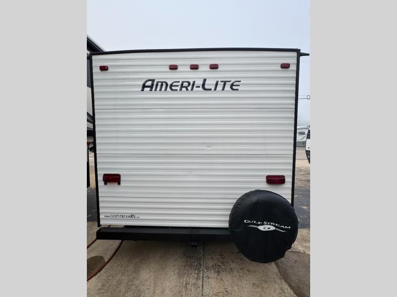 If you're looking for an affordable, lightweight travel trailer, you've found it in the Ameri-Lite Super Lite by Gulf Stream. These models may be lighter in weight, but they don't skimp out on comfortable features. Each unit includes high-performance vinyl flooring throughout, a white kitchen sink, craft-made cabinetry with designer pulls, plus fabric-wrapped box valances to make you feel right at home. The 16,000 BTU furnace and 13,500 BTU A/C will keep you comfortable in any season, and each model includes multiple USB ports for your tablet and phone and a 6' 8" ceiling height for added space. These models also include a 6-gallon gas DSI water heater, a central control panel to control your unit's functions, plus plenty of safety features you are sure to appreciate for your family. You can't go wrong with an Ameri-Lite Super Lite travel trailer. Choose your favorite floorplan today!