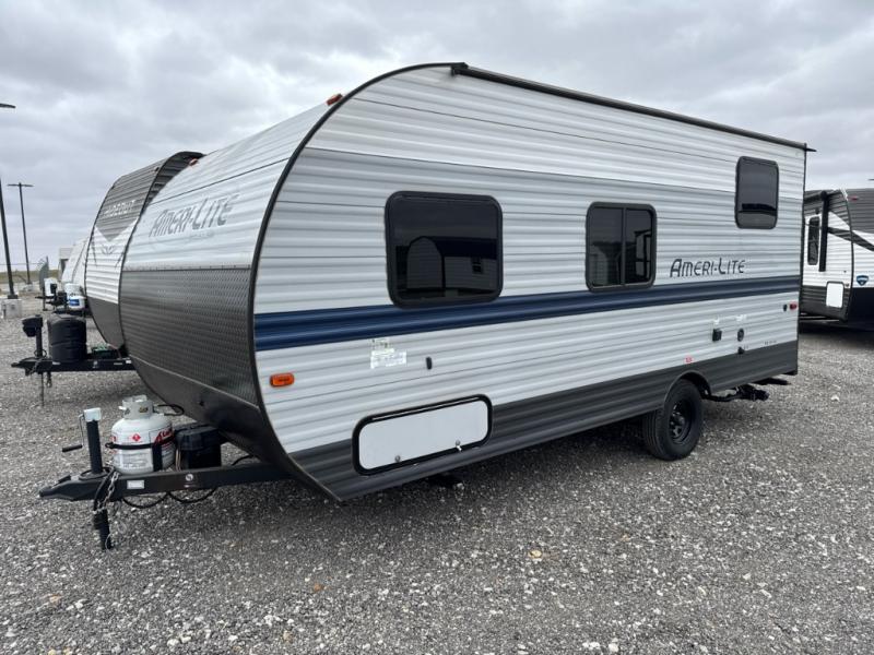 If you're looking for an affordable, lightweight travel trailer, you've found it in the Ameri-Lite Super Lite by Gulf Stream. These models may be lighter in weight, but they don't skimp out on comfortable features. Each unit includes high-performance vinyl flooring throughout, a white kitchen sink, craft-made cabinetry with designer pulls, plus fabric-wrapped box valances to make you feel right at home. The 16,000 BTU furnace and 13,500 BTU A/C will keep you comfortable in any season, and each model includes multiple USB ports for your tablet and phone and a 6' 8" ceiling height for added space. These models also include a 6-gallon gas DSI water heater, a central control panel to control your unit's functions, plus plenty of safety features you are sure to appreciate for your family. You can't go wrong with an Ameri-Lite Super Lite travel trailer. Choose your favorite floorplan today!