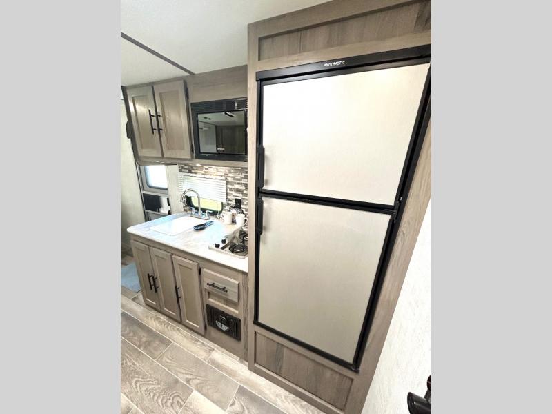 If you're looking for an affordable, lightweight travel trailer, you've found it in the Ameri-Lite Super Lite by Gulf Stream. These models may be lighter in weight, but they don't skimp out on comfortable features. Each unit includes high-performance vinyl flooring throughout, a white kitchen sink, craft-made cabinetry with designer pulls, plus fabric-wrapped box valances to make you feel right at home. The 16,000 BTU furnace and 13,500 BTU A/C will keep you comfortable in any season, and each model includes multiple USB ports for your tablet and phone and a 6' 8" ceiling height for added space. These models also include a 6-gallon gas DSI water heater, a central control panel to control your unit's functions, plus plenty of safety features you are sure to appreciate for your family. You can't go wrong with an Ameri-Lite Super Lite travel trailer. Choose your favorite floorplan today!