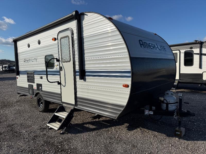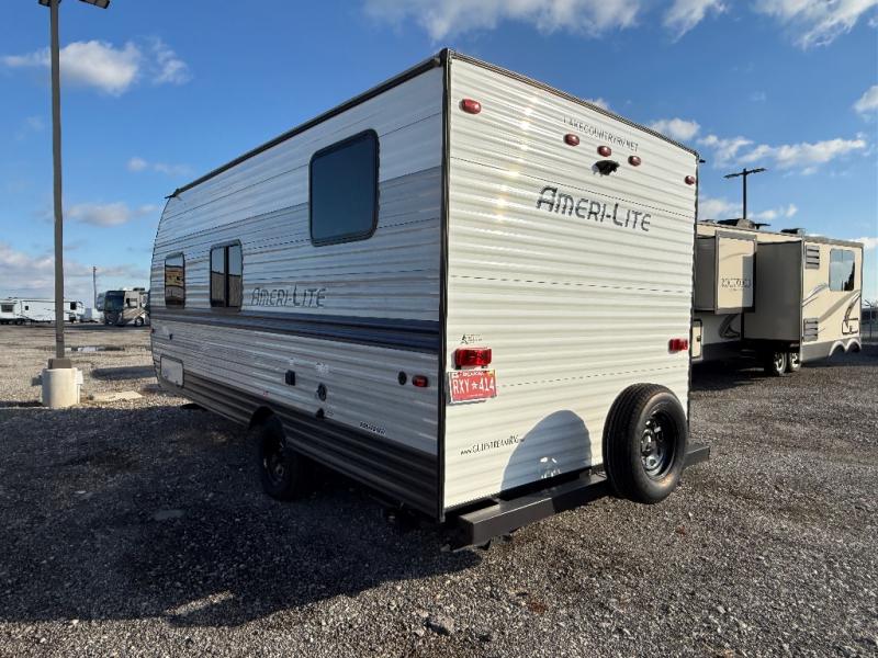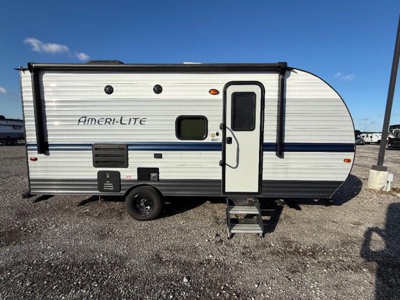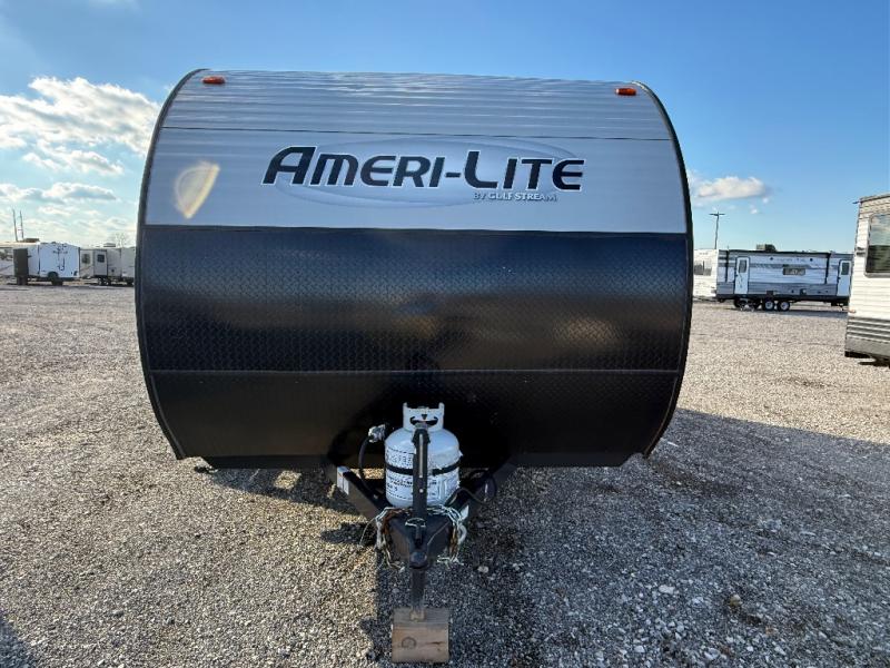 If you're looking for an affordable, lightweight travel trailer, you've found it in the Ameri-Lite Super Lite by Gulf Stream. These models may be lighter in weight, but they don't skimp out on comfortable features. Each unit includes high-performance vinyl flooring throughout, a white kitchen sink, craft-made cabinetry with designer pulls, plus fabric-wrapped box valances to make you feel right at home. The 16,000 BTU furnace and 13,500 BTU A/C will keep you comfortable in any season, and each model includes multiple USB ports for your tablet and phone and a 6' 8" ceiling height for added space. These models also include a 6-gallon gas DSI water heater, a central control panel to control your unit's functions, plus plenty of safety features you are sure to appreciate for your family. You can't go wrong with an Ameri-Lite Super Lite travel trailer. Choose your favorite floorplan today!