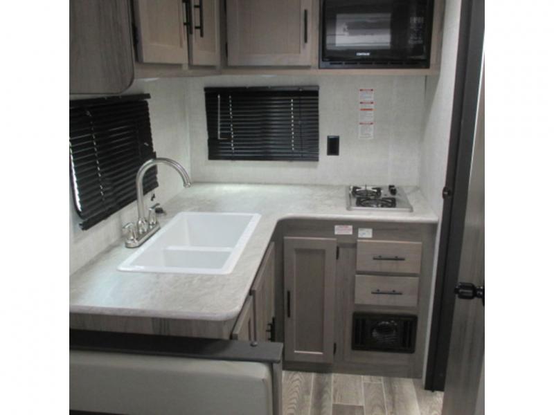 If you're looking for an affordable, lightweight travel trailer, you've found it in the Ameri-Lite Super Lite by Gulf Stream. These models may be lighter in weight, but they don't skimp out on comfortable features. Each unit includes high-performance vinyl flooring throughout, a white kitchen sink, craft-made cabinetry with designer pulls, plus fabric-wrapped box valances to make you feel right at home. The 16,000 BTU furnace and 13,500 BTU A/C will keep you comfortable in any season, and each model includes multiple USB ports for your tablet and phone and a 6' 8" ceiling height for added space. These models also include a 6-gallon gas DSI water heater, a central control panel to control your unit's functions, plus plenty of safety features you are sure to appreciate for your family. You can't go wrong with an Ameri-Lite Super Lite travel trailer. Choose your favorite floorplan today!