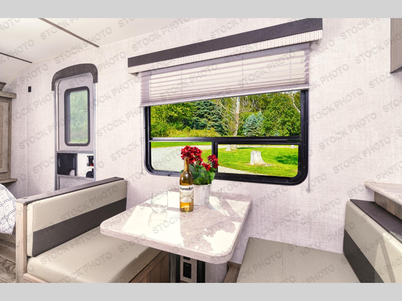 When you take a trip in this Ameri-Lite Super Lite travel trailer, you take a trip in affordable style. The booth dinette is the perfect place to gather together for a breakfast feast, but it also helps this trailer sleep four people comfortably each evening because it folds into a bed whenever needed. The queen-size bed in the front of this trailer adds an extra bit of sleeping space, and the overhead cabinets that are scattered throughout give this trailer many places to store all of your traveling necessities. The rear corner bath is convenient to access and provides extra privacy.