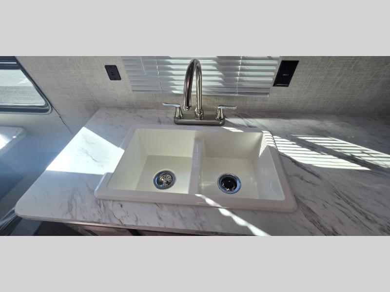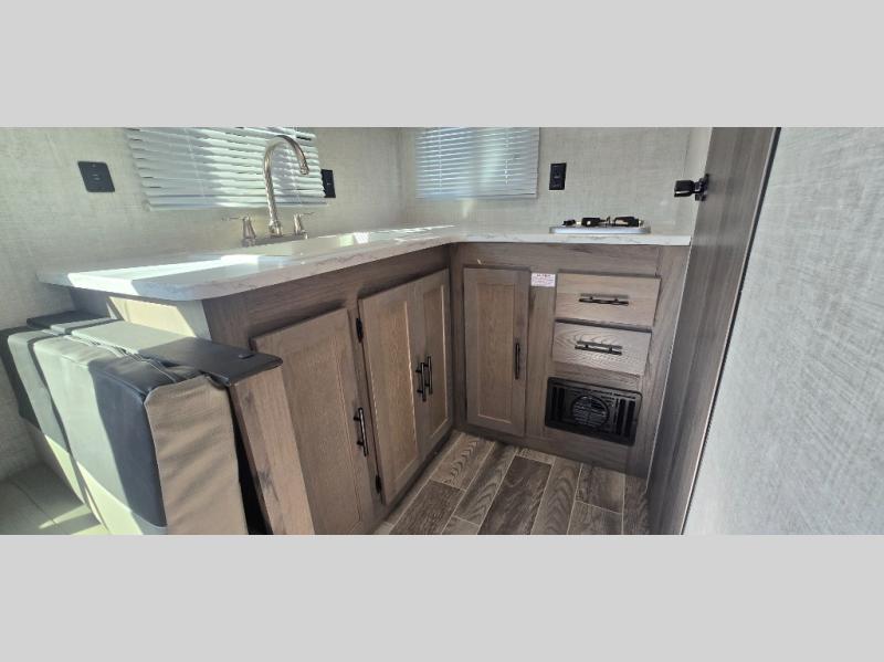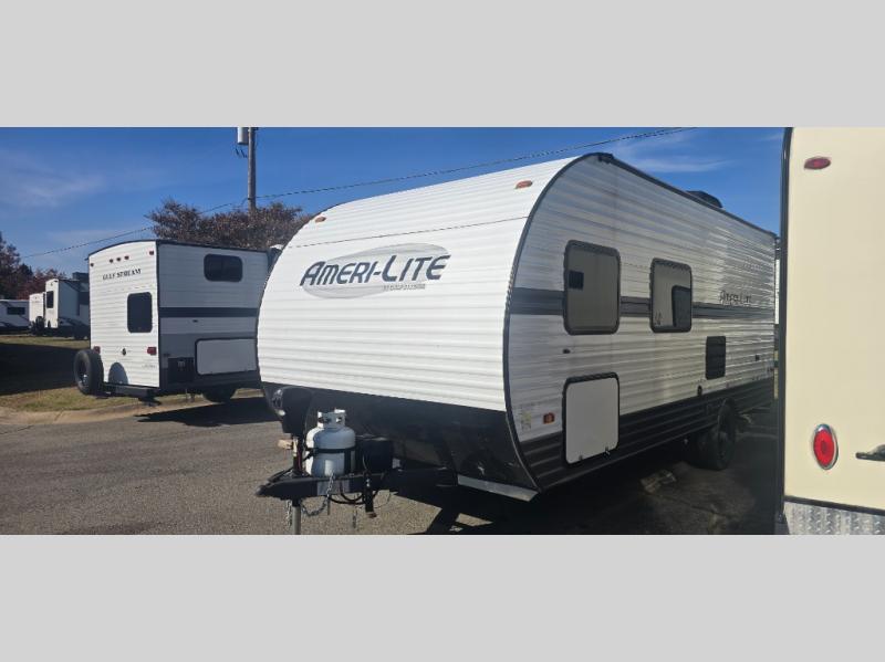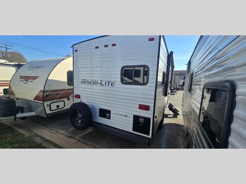 If you're looking for an affordable, lightweight travel trailer, you've found it in the Ameri-Lite Super Lite by Gulf Stream. These models may be lighter in weight, but they don't skimp out on comfortable features. Each unit includes high-performance vinyl flooring throughout, a white kitchen sink, craft-made cabinetry with designer pulls, plus fabric-wrapped box valances to make you feel right at home. The 16,000 BTU furnace and 13,500 BTU A/C will keep you comfortable in any season, and each model includes multiple USB ports for your tablet and phone and a 6' 8" ceiling height for added space. These models also include a 6-gallon gas DSI water heater, a central control panel to control your unit's functions, plus plenty of safety features you are sure to appreciate for your family. You can't go wrong with an Ameri-Lite Super Lite travel trailer. Choose your favorite floorplan today!