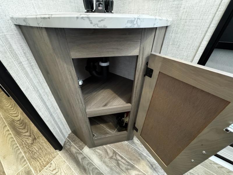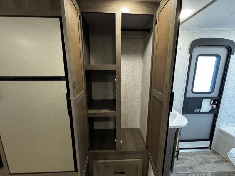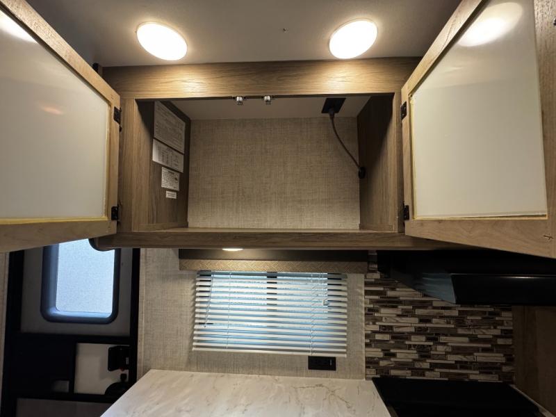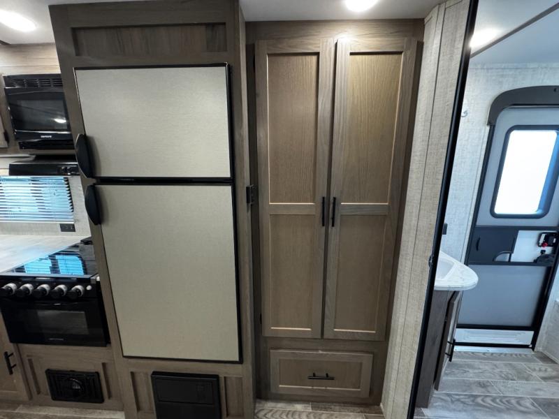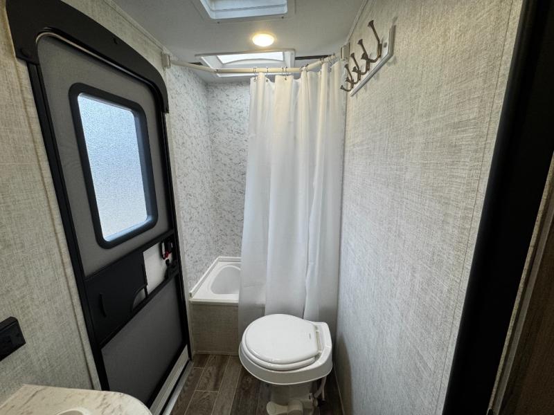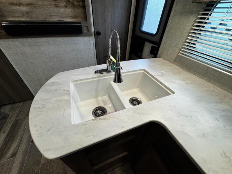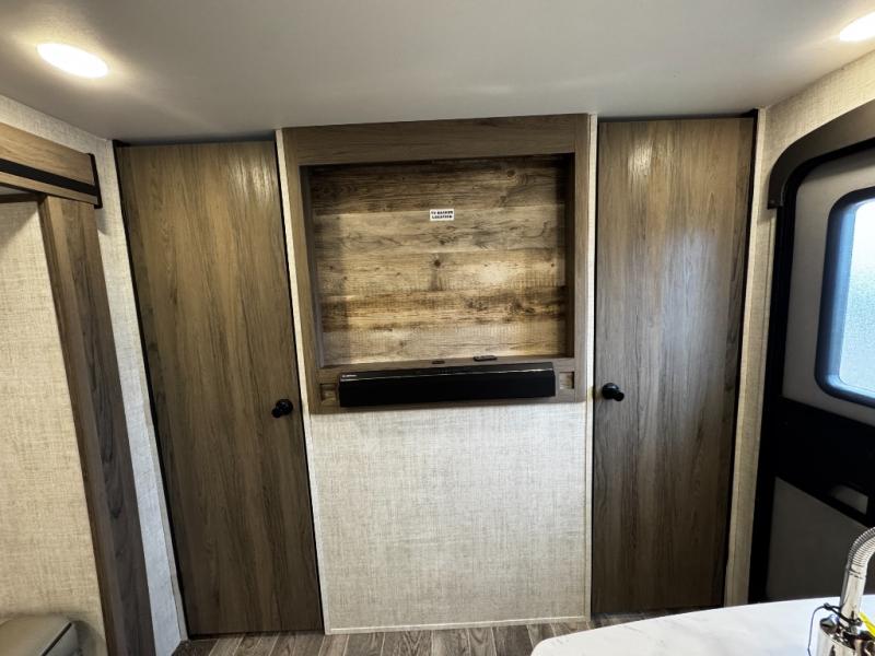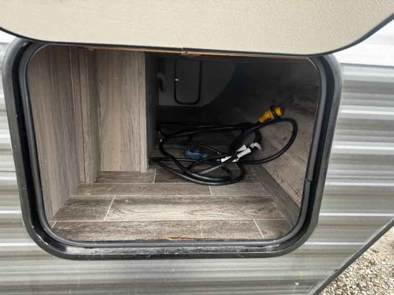 A trip to the lake or your favorite state park just got better in this comfortable travel trailer. Whether you're relaxing on the sofa or booth dinette, cooking in the spacious kitchen, or sitting outside under the electric awning with LED lights, you will enjoy every minute you camp. You and your spouse will have a private bedroom up front with a queen bed and dual wardrobes, and there are double-size bunks for the kids or your friends!