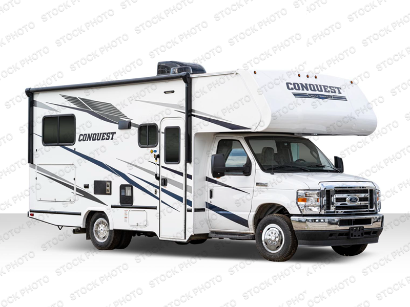 Each one of these Gulf Stream RV Conquest Class C gas motorhomes is built with a Cradle of Strength® on either the Ford E350 or E450 chassis depending on the model! Their construction also consists of a welded aluminum perimeter frame, a seamless EPDM rubber roof, and a high-gloss fiberglass exterior with Azdel synthetic substrate in the walls to prevent rotting. The included Conquest Luxury package comes with high-performance vinyl flooring throughout for an easier clean, all stainless steel appliances, and an AM/FM/CD stereo with built-in monitor and back-up camera. It also adds exterior conveniences like upgraded exterior lighting, upgraded exterior graphics, a friction-hinge entry door, and an electric awning with LED lights to relax under whether day or night!