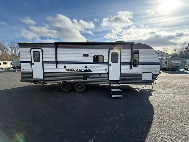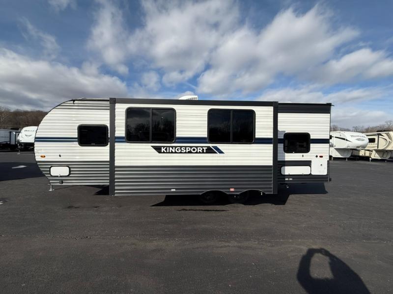 With any Kingsport Ultra Lite by Gulf Stream, you can enjoy a lightweight travel trailer on a budget with plenty of standard features to enjoy, and the required Lite Value Package offers convenience, comfort and Tech-Ready upgrades such as Wi-Fi and satellite TV ready connections, solar panel prep, back-up camera hookups, and multiple USB ports to keep the electronics charged. Each is constructed with a one-piece synthetic vinyl roof, fiberglass insulation hand-cut and glued in place, Butyl caulk for better seal and fewer streaks, and full-width steel outriggers for superior strength and support. Inside is easy to care for with vinyl wallcovering and high-performance vinyl flooring throughout, plus you will enjoy the upgraded furniture package, the designer backsplash in the kitchen, and the craft-made cabinetry with designer drawer and door pulls. Make your selection now!