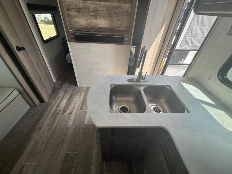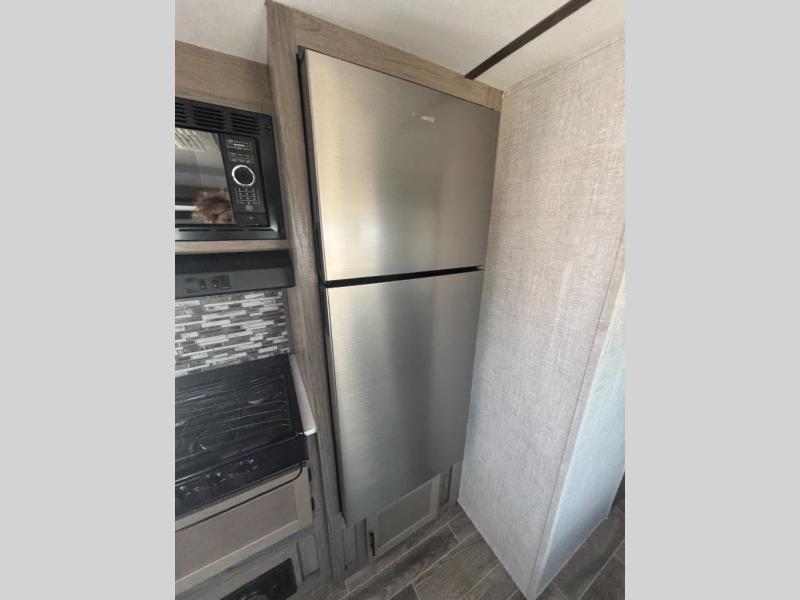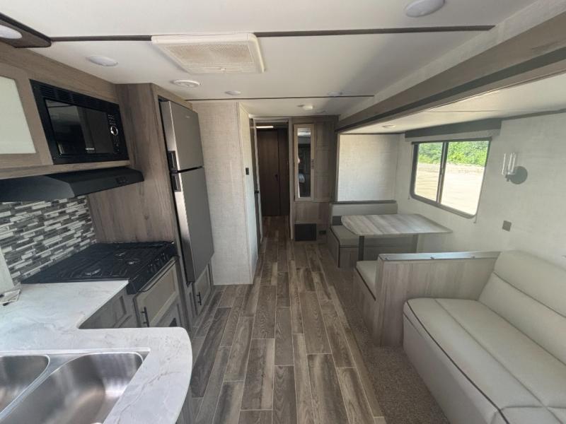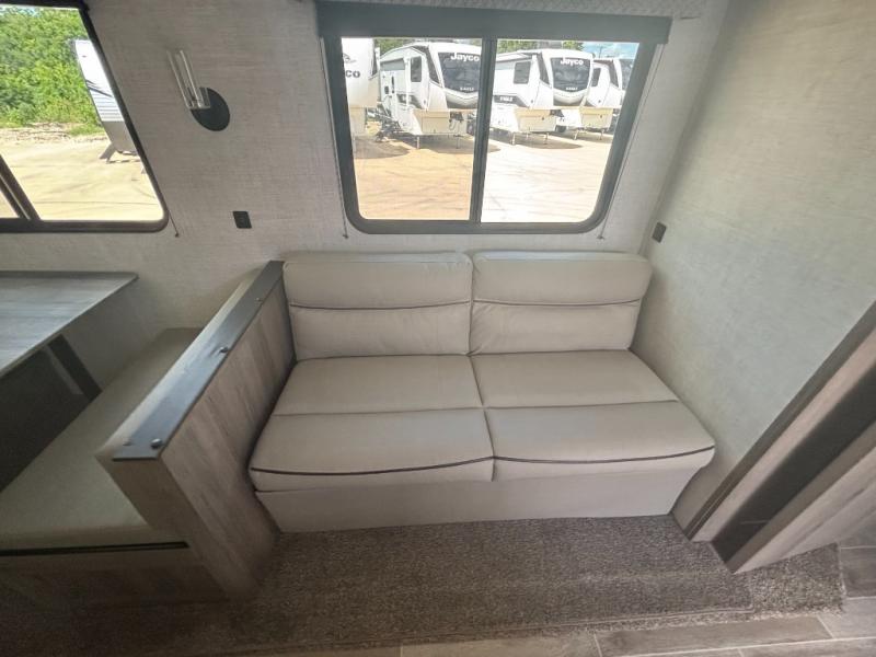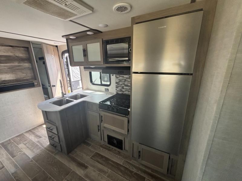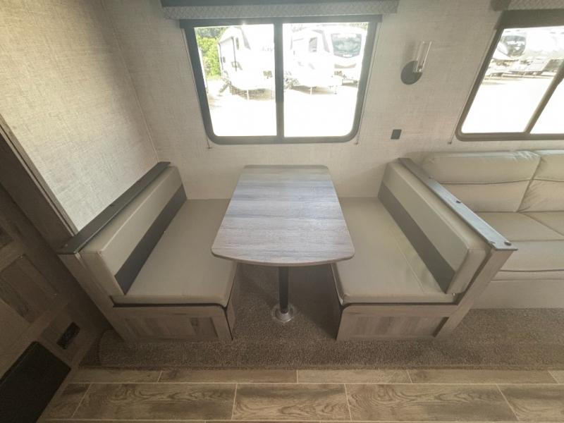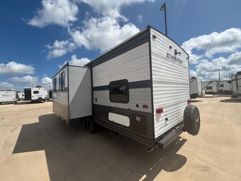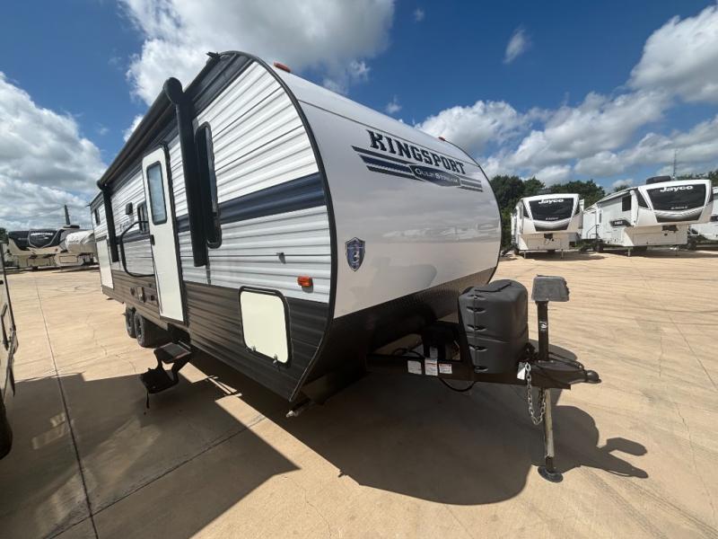 With any Kingsport Ultra Lite by Gulf Stream, you can enjoy a lightweight travel trailer on a budget with plenty of standard features to enjoy, and the required Lite Value Package offers convenience, comfort and Tech-Ready upgrades such as Wi-Fi and satellite TV ready connections, solar panel prep, back-up camera hookups, and multiple USB ports to keep the electronics charged. Each is constructed with a one-piece synthetic vinyl roof, fiberglass insulation hand-cut and glued in place, Butyl caulk for better seal and fewer streaks, and full-width steel outriggers for superior strength and support. Inside is easy to care for with vinyl wallcovering and high-performance vinyl flooring throughout, plus you will enjoy the upgraded furniture package, the designer backsplash in the kitchen, and the craft-made cabinetry with designer drawer and door pulls. Make your selection now!