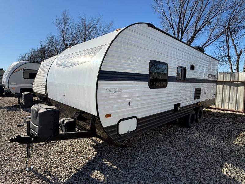 FREE DELIVERY AVAILABLE IN ALL 48 STATES! 2022 GULF STREAM TRAILMASTER ULTRA LITE 248BH. Length is 27FT. SUPER NICE! 3 BEDS WITH STORAGE CABINETS ABOVE AND UNDERNEATH. 2 XL REAR BUNKS, SOFA CONVERTS INTO A XL SLEEPER. SUPER NICE, CABINETRY. BEAUTIFUL KITCHEN TOPPED WITH LED LIGHTING. FULL STEREO SYSTEM WITH INDOOR AND OUTDOOR SPEAKERS. AWNING WITH LED LIGHTING. PRE WIRED SOLAR. Sleeps 4, COLD A/C, Super Clean. SUPER NICE TRAILER ONLY 3899 UVW. CAN BE PULLED WITH A SMALL SUV. 30AMP POWER. OUR PRICE $13995. SEVERAL SUPER NICE RV