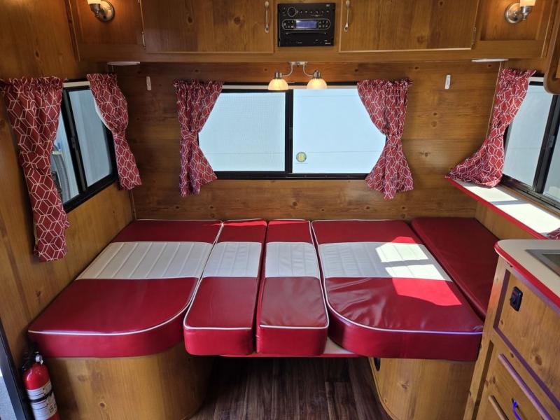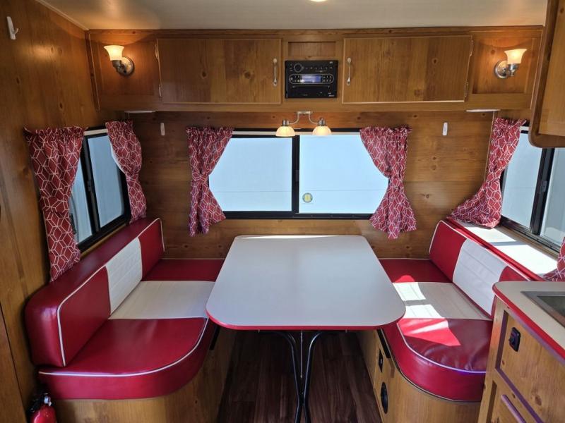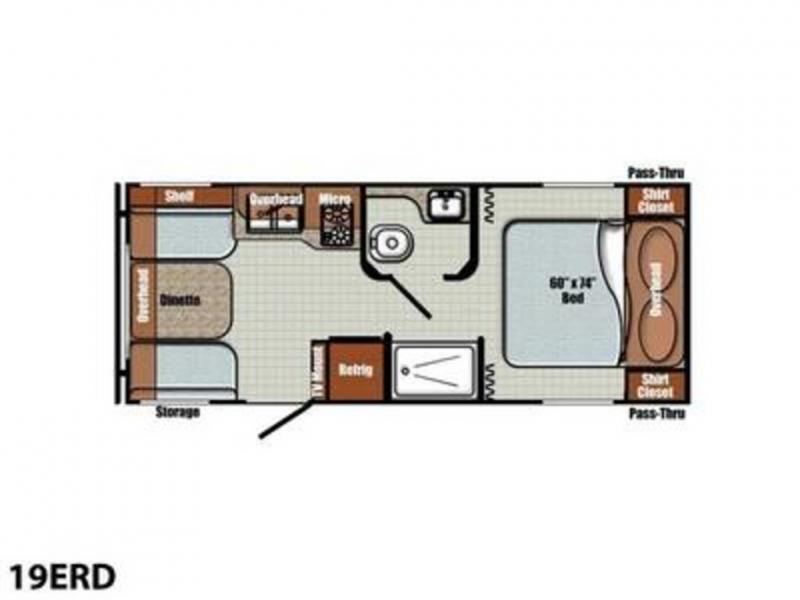 If you enjoy a more classic look for an RV, you'll love this Vintage Cruiser 19ERD. The rear booth dinette is surrounded by windows for bright, open views, and you'll find overhead storage here for dry goods or snacks. The chef of your group will have a two burner cooktop and a microwave oven to prepare meals, and you may want to add an optional 19" LED HDTV to keep your guests busy at the dinette while dinner is being made. The private toilet and sink is right across the hall from the 24" x 36" shower so two people can freshen up at once. How convenient! This model also features a semi-private front bedroom with a privacy curtain for your own space, plus an RV queen bed and dual shirt closets to keep your clothes tidy!