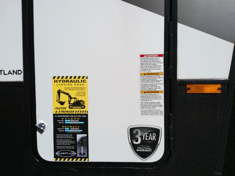 With any Bighorn fifth wheel by Heartland, there is in-house constructed laminated fiberglass sidewalls, double-welded aircraft quality aluminum superstructure cage construction, walkable roof decking with wood roof trusses, a heated and enclosed underbelly plus heated and insulated holding tanks and gate valves for any climate camping, plus color-coded Plumb-PLEX water lines. You can easily setup camp with the 6-point hydraulic landing gear and auto leveling system, and stow away lots of outdoor gear in the Super Store-More 3-sided accessed basement with 30% more storage. There is easy-to-care for vinyl flooring on all main floors and woven flooring on slide floors, a Whisper quiet A/C system with dual high output 15,000 BTU A/C units for maximum comfort, Amish-crafted 100% hardwood cabinetry, fascia and doors with hidden hinges and drawers, in-house milled and finished solid surface countertops throughout the kitchen, plus a "Spa Bath" and more!. And each is pre-wired for satellite systems and wi-fi internet.