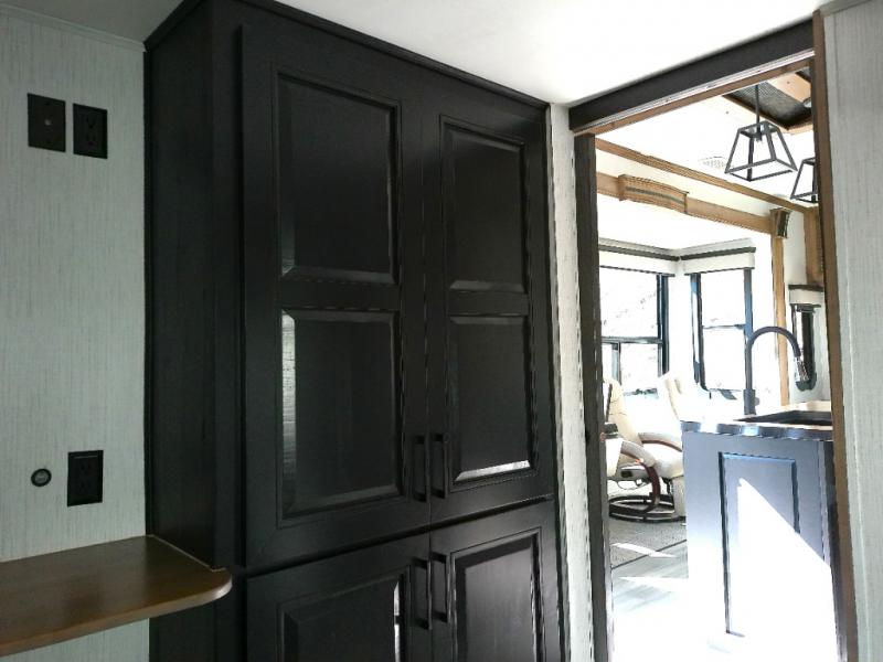 Looking for a multi-purpose extra room in your next RV, be it for full-time use or long getaways? This Bighorn offers a middle den with a slide out sofa and storage as well as counter space so you can utilize this room as a second living area, a bedroom when someone sleeps on the sofa and/or an office with the countertop being your desk. And there is a loft above for storage or extra sleeping space. You will have your own privacy in the front bedroom with a king bed slide out, your own front wall closet, and a space prepped for a washer/dryer option to always have clean linens, plus a dual entry bathroom for convenience for all. The kitchen amenities are just as impressive with a convection microwave and more appliances to make warm meals and store leftovers in the residential refrigerator. You can dine at the live edge dinette table with two standard chairs and there are two folding chairs for when you have friends over. The rear living area offers a flip and fold sleeper sofa for relaxing and as extra sleeping space, and power theater seating, plus there is more to love!