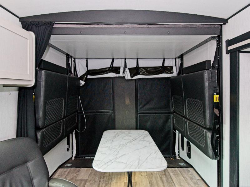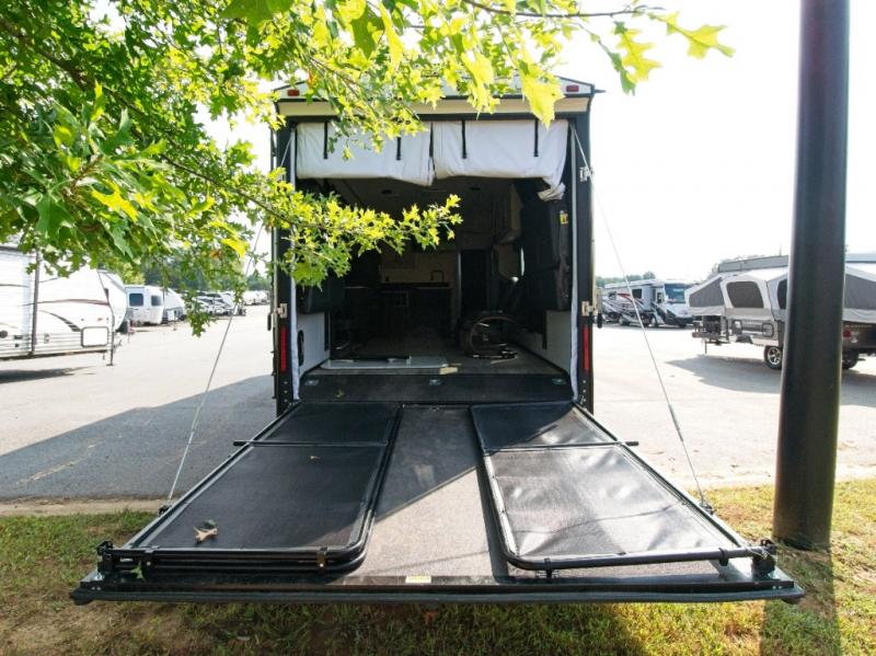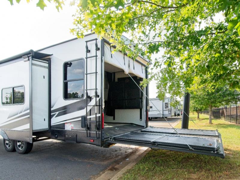 The Heartland RV delivers rugged adventure with a rear ramp door for easy toy loading and a spacious interior featuring a versatile rollover sofa for relaxing after the ride.